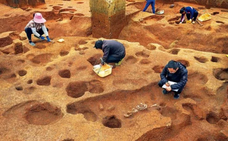 照片中是正在发掘的岩山寨遗址岩背墓地的北区,这是距今5000—4000年前石峡文化人群所使用的公共墓地,岩山寨遗址与石峡遗址都发现有大规模的史前公共墓地,这些墓地反映出石峡文化阶段岭南地区的丧葬习俗、社会发展程度与社会组织结构等信息。岩背墓地目前清理出石峡文化时期墓葬100余座,墓地可见明确的分区、分组规划,墓葬分为相对独立的南、北两区,南区又可分三组,不同区、组的墓葬之间差异显著:北区墓葬数量较少,排列分散;南区墓葬数量较多,分布密集、排列有序;南区之内又有组别的差别,随葬玉器的16座高等级墓葬集中分布于南区的东南组。墓葬之间具有明显的等级差异,低等级墓规模小、随葬品普遍较少,而高等级墓规模大、随葬品丰富,随葬成组的玉石礼器,普遍采用二次葬俗。摄影/星云