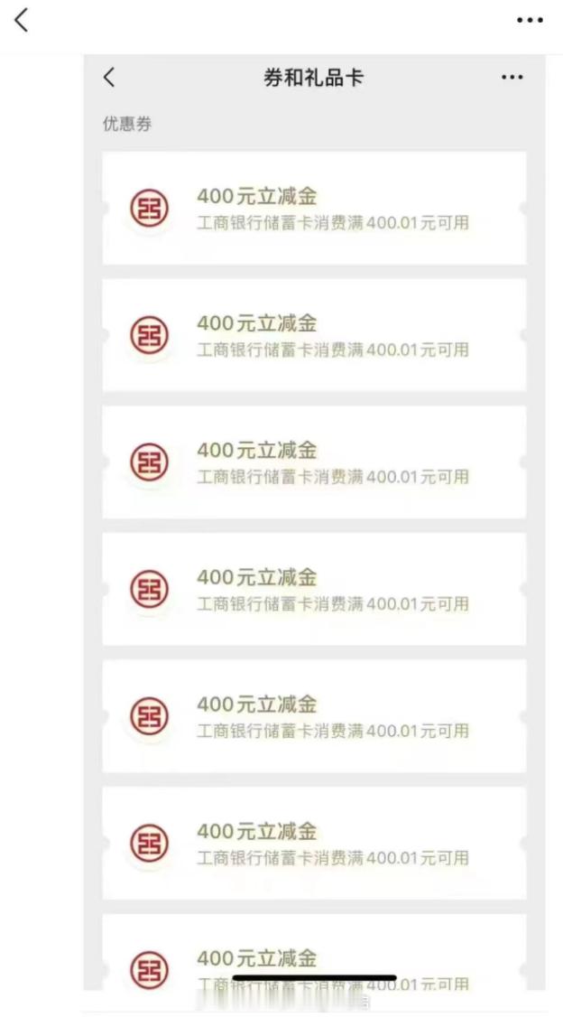 最近的工行有存款500w就会给24张立减400的券有条件的话大家最高可以拿到9600的立减券关注我每天解锁一个薅羊毛小知识