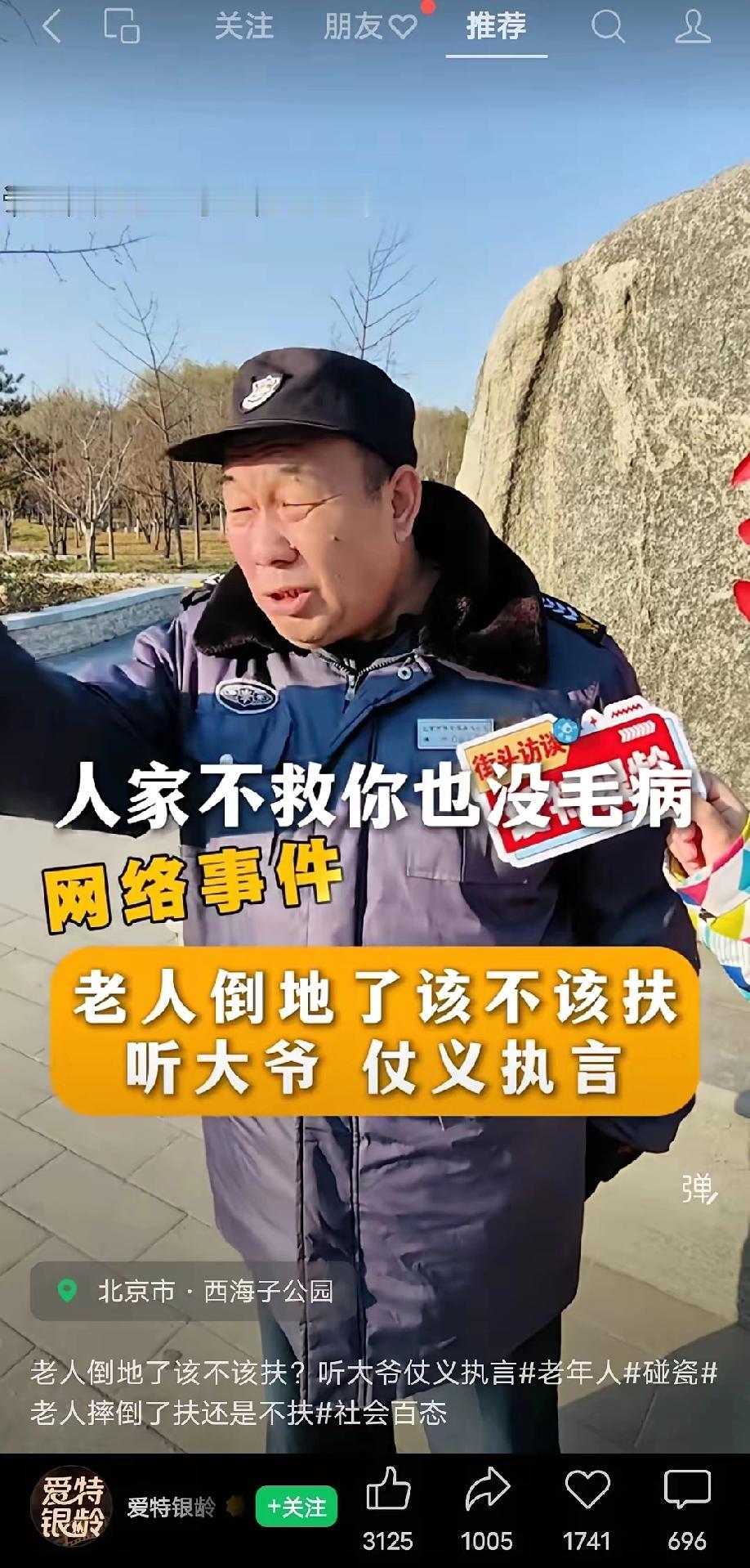 老人倒地究竟该不该扶? 六十岁的大爷说:我也是60岁了,我的建议是 不应该扶,因为你不动别人有事也赖不到你身上,有监控照着有些事你也说不清! 这话戳中很多人顾虑。河北曾有小伙子扶倒地老人,被家属认定为肇事者,要求赔偿医药费。虽最终监控还其清白,但耗时耗力的纠纷,让不少人不敢再伸手。 冷漠的代价太沉重。上个月某小区,张阿姨买菜时脑梗倒地。路过者或犹豫或拍照留证,三分钟后才有人施救。医生说,再晚十分钟可能危及生命。 法律早有明确保障。《民法典》规定,自愿紧急救助造成受助人损害,救助人不担民事责任。不用怕好心办坏事,法律给救助人撑腰。 科学救助有方法。先拍视频留证,喊周围人作证,再打120和110。河南小伙就这么做过,既帮了人,也没惹麻烦,还被评为见义勇为先进个人。 没人能保证自己永远不会遇到意外。今天你冷眼旁观,明天自己陷入困境,可能也没人愿意伸出援手。冷漠会形成循环,温暖才能打破隔阂。 你遇到老人倒地会扶吗?会用什么方式救助?欢迎在评论区留言讨论。