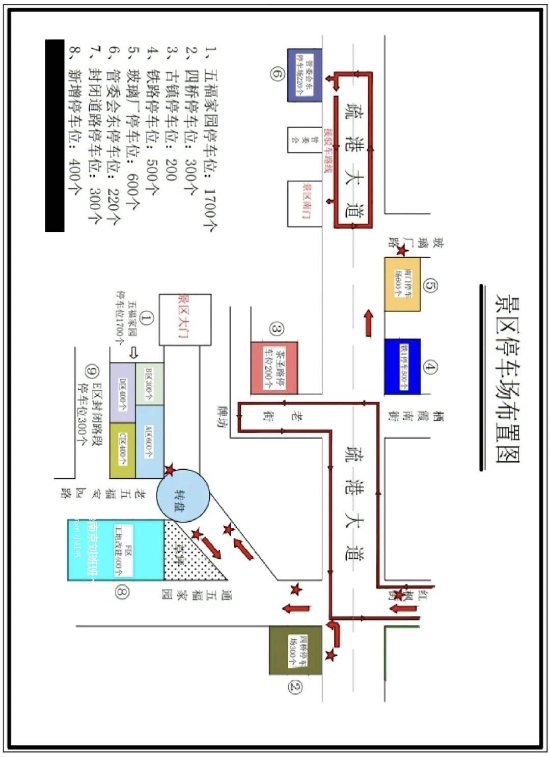 🅿️景区停车场:在四桥下方和五福家园转盘处、以及古镇停车场,小车停车费4元/小时,具体参考图片