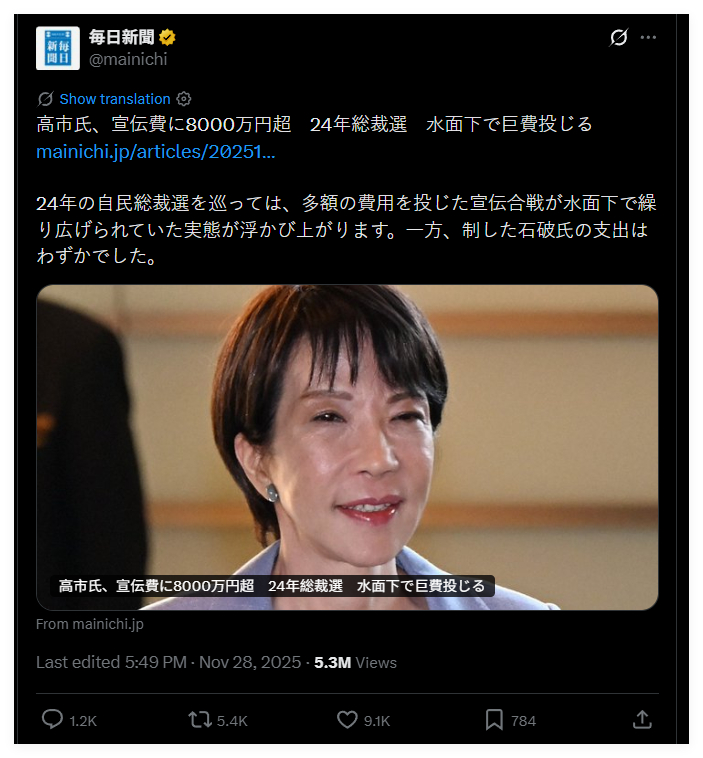 #因报道高市不利新闻多家日媒遭网暴#【多家日本媒体,遭右翼网暴!】这两天,多家日本主流媒体,持续遭到日本右翼分子的围攻。而原因,仅仅是这些媒体报道了对日本首相高市早苗不利的新闻。《日本经济新闻》,就是其中一个“受害者”。上周,在美国《华尔街日报》报道了美国总统特朗普要求高市早苗避免在台湾问题上挑衅中国的情况后,《日本经济新闻》也在报道中谈到了这一情况。不过,由于日本政府随后予以否认,还称《华尔街日报》的报道不实,这家美国媒体遭到了日本右翼势力的疯狂围攻。该报负责撰写这一报道的华裔记者,更因为自己的华裔身份遭到了日本右翼的网暴,被扣了一顶“中国特务”的帽子。日本的《每日新闻》于11月28日发表的一则与中国完全没有关系的报道,竟也成为了日本右翼围攻的靶子。这则新闻的内容是,高市早苗在2024年日本自民党总裁选举期间,曾疯狂砸了8384万日元(约381万元人民币)用于宣传自己,但最终还是输给了石破茂,而且石破茂的宣传开销仅为42万日元(约1.9万元人民币)。网页链接