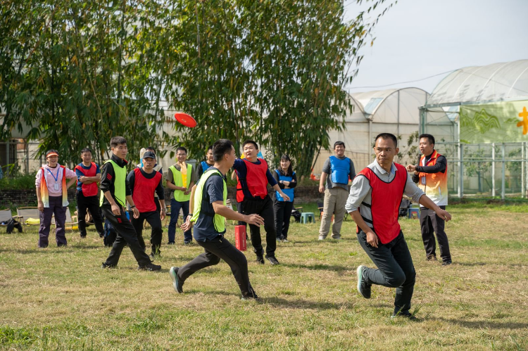 运动会将人员随机分为四个小组,设置了“齐心协力”“趣味飞盘”“世界球”等集趣味性、协作性与挑战性于一体的项目。在“齐心协力”项目中,队员们跨坐在充气“毛毛虫”上,在整齐口号中协同前进;“趣味飞盘”项目则考验技巧与精准,每一次飞盘准确投掷,都赢得阵阵喝彩;而“世界球”项目重在耐心与配合,队员们通过细微调整,引导圆球沿地图轨迹谨慎行进,展现出高度的团队默契。