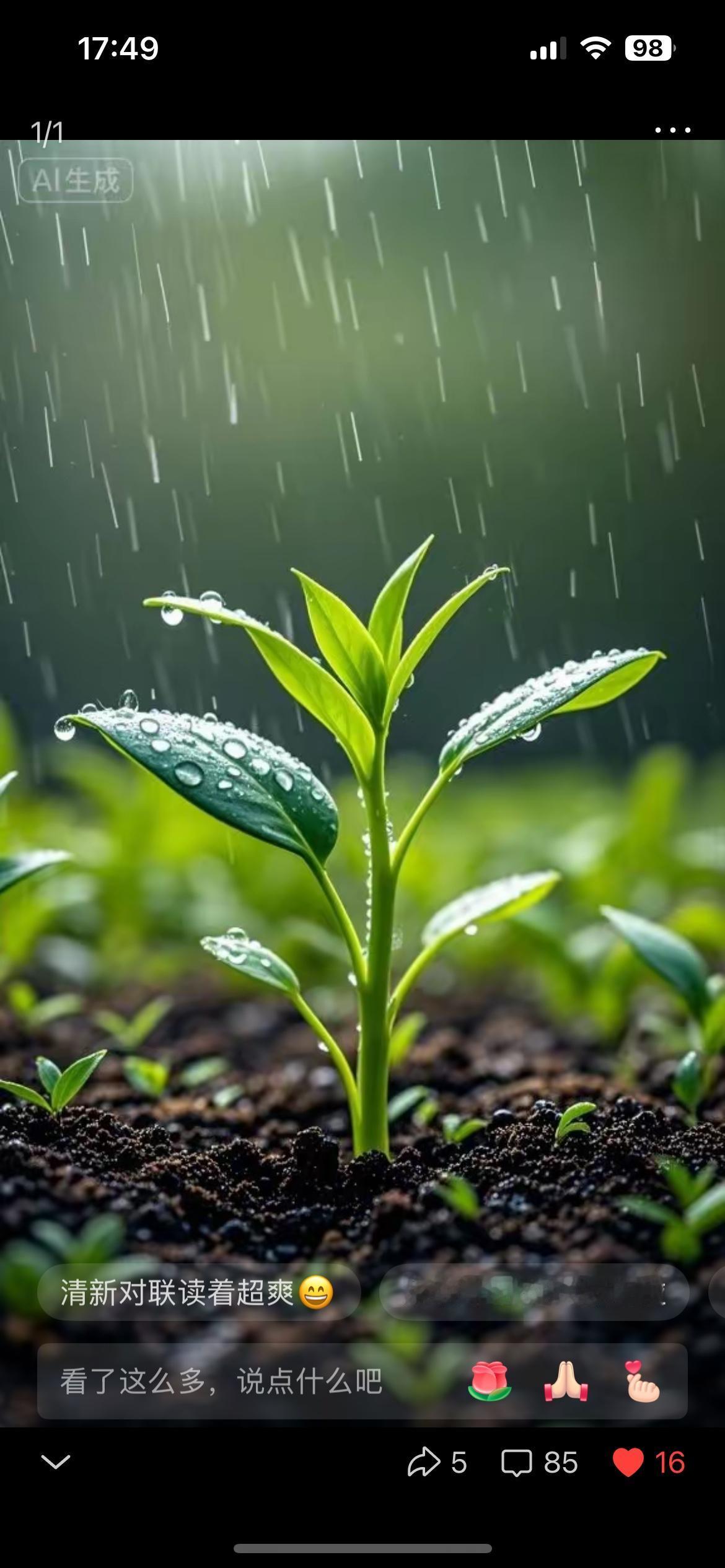 雨润新苗破土出, 风吹嫩柳吐叶来。 横批:《新苗与嫩柳》