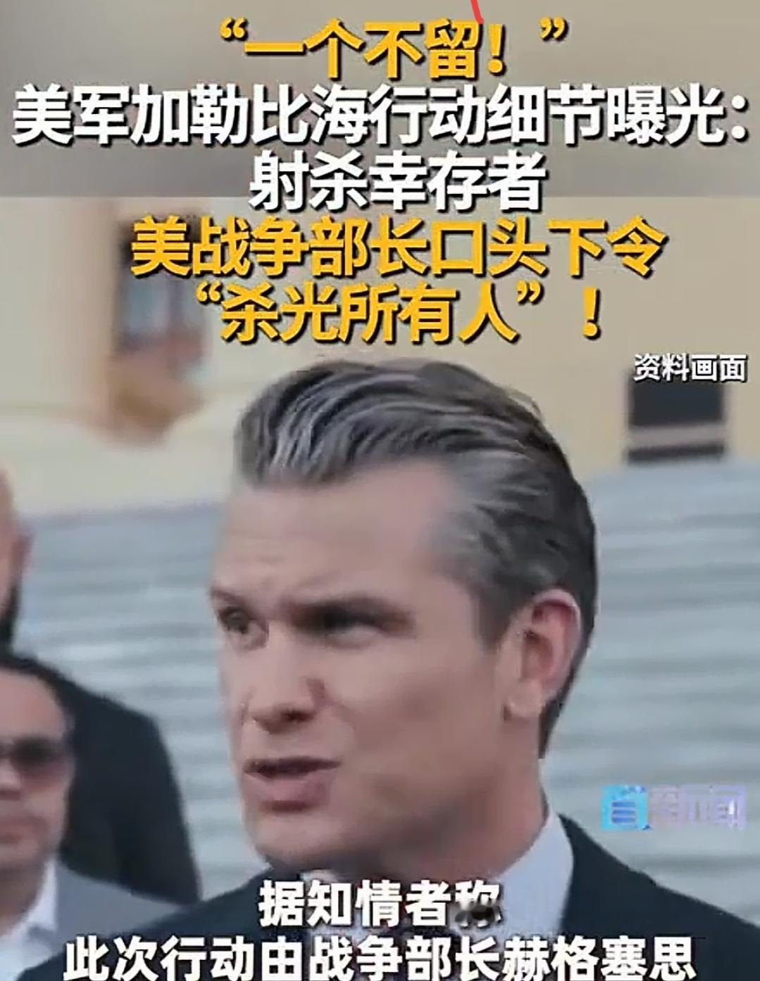 美国现在横行无忌,自大妄为! 那些加勒比海的船只到底里面是什么人,全球都不知道,但美国就直接发射导弹袭击了,全都炸到千米深的海底了,谁知道是真是假呢?美国不是号称民主吗?那为什么不先抓过来问一问?审一审落实好证据呢?这都是美国的圈套,就像以前拿一袋洗衣粉就可以恣意妄为一样,如今又是用同样的招数! 这一次的美国不是20年前的美国了,实力已经大减,倘若再发动一场战争,美国将加速衰落!