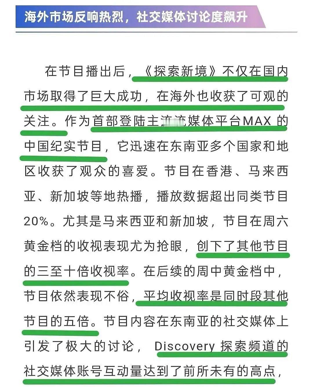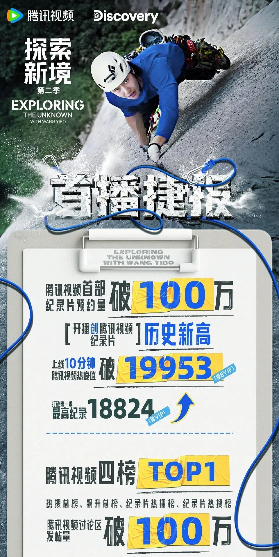 《探索新境2》首播捷报四榜第一!热度历史新高!预约量创记录! 探索新境1就很牛,海内外都创内娱纪录片纪录,海外更是创下当地同时段其他节目3-10倍收视率