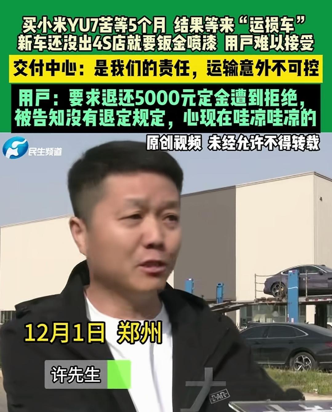 啥都没见着呢,先交5000元定金! 这到底合适吗? 实在想不通,这些人的消费观念,你买个车买啥不好,非要等还要等五个月,还要先交5000元,图啥? 新车运过来就发生了凹陷,车还没拉到手呢,就喷了漆,做钣金了,定金还不能退,一环套一环,环环紧密相扣!