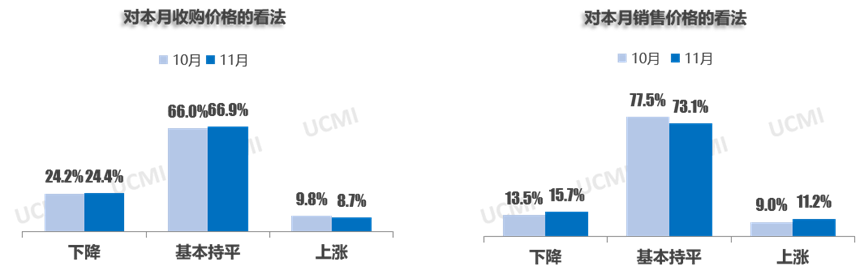 调查显示,11月二手车收购价格下降;销售价格环比上月基本持平,其中认为收购价格“下降”的二手车经理人比例为24.4%;认为销售价格“持平”的二手车经理人比例为73.1%。