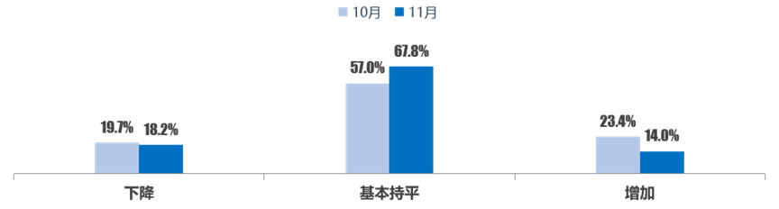 从二手车经理人反馈来看,18.2%的车商反映11月二手车交易量有所下降,增加的比例较上月有所减少,持平的比例有所上升。