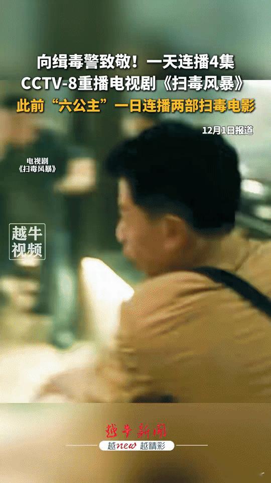 缉毒警故事霸屏!CCTV-8一天连播4集《扫毒风暴》,这波致敬太燃了 缉毒警的故事又“霸屏”了!CCTV-8一天连播4集《扫毒风暴》,这波操作谁看了不说句“太燃了”! 11月30日中午,CCTV-8连播电视剧《扫毒风暴》第1至4集,12月1日继续播出5至8集。这部剧塑造了禁毒斗争中的英雄群像,此前“六公主”(央视电影频道)还一日连播《枪间金三角》《爆裂点》两部扫毒电影。 网友们被作品中缉毒警的坚守与无畏深深打动,纷纷表示坚决支持禁毒工作,向缉毒警致敬。这些影视作品让更多人看到缉毒斗争的艰辛,也让禁毒意识深入人心。
