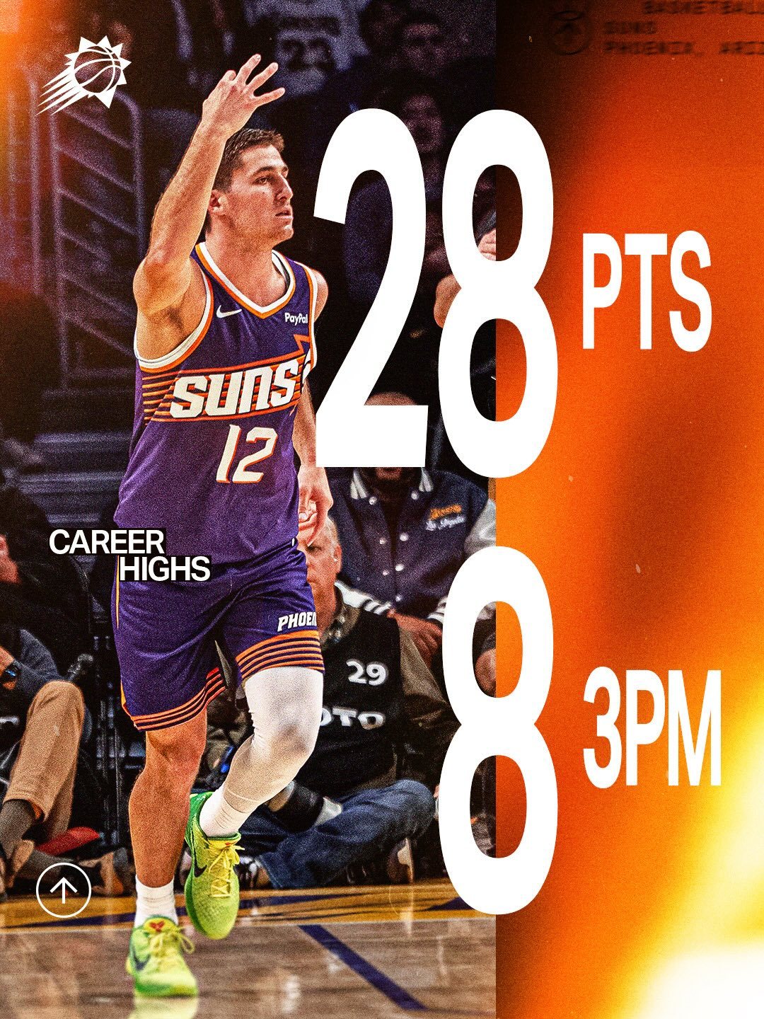 科林·吉莱斯皮迎来了职业生涯之夜!👌28分和8记三分同为生涯新记录!菲尼克斯太