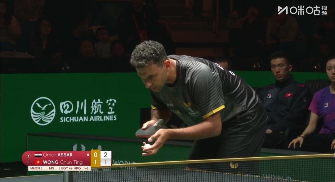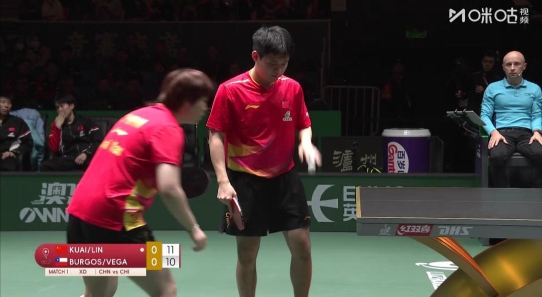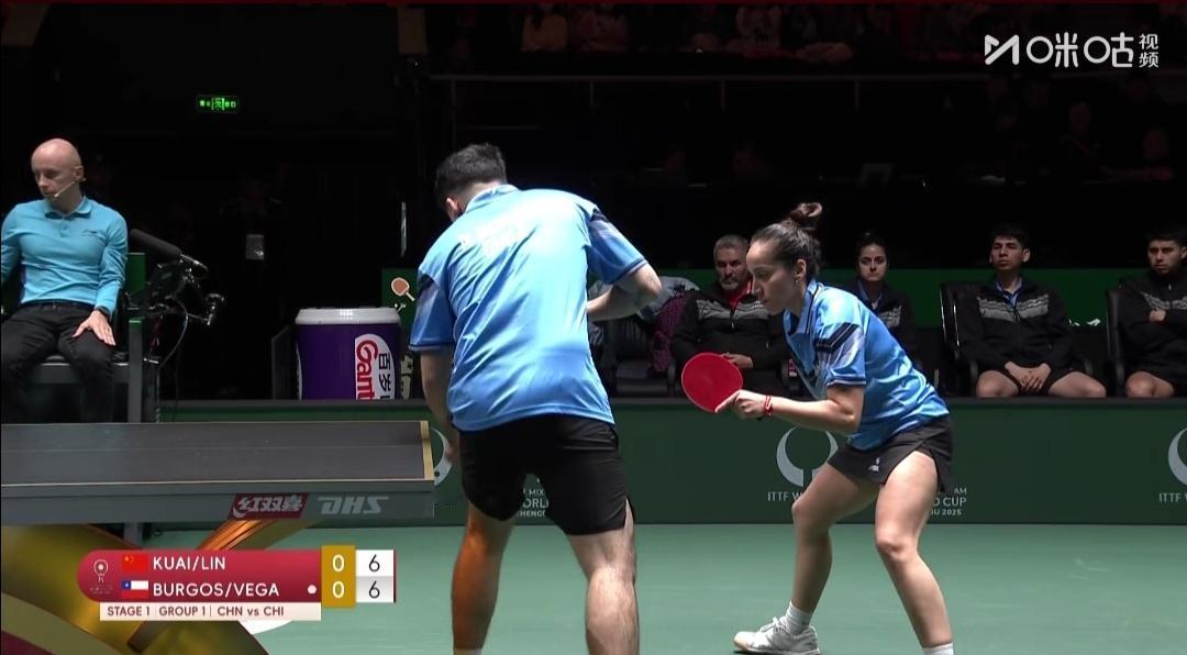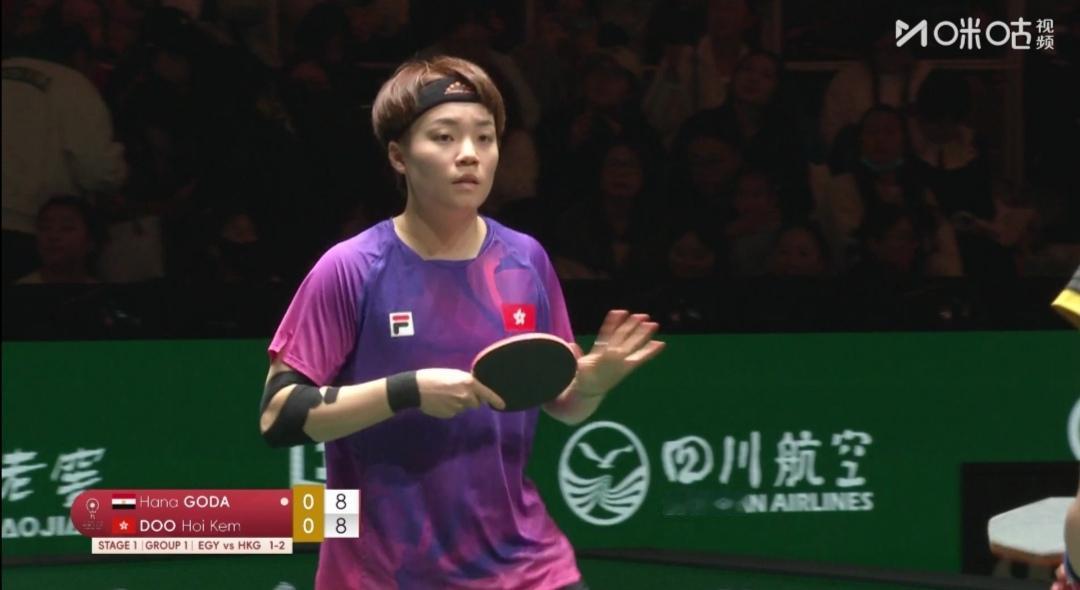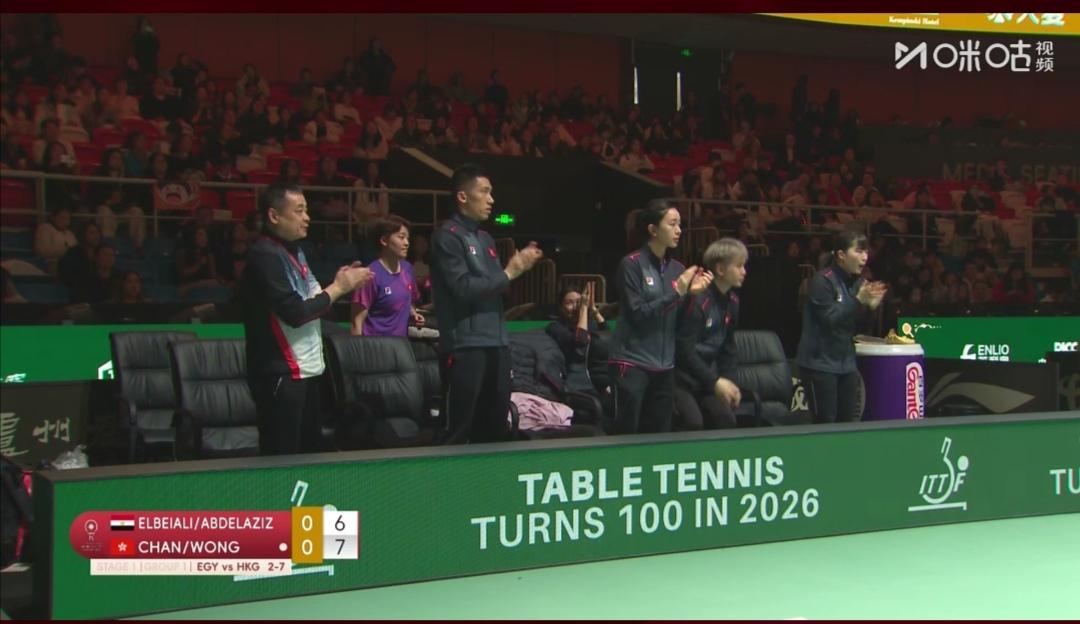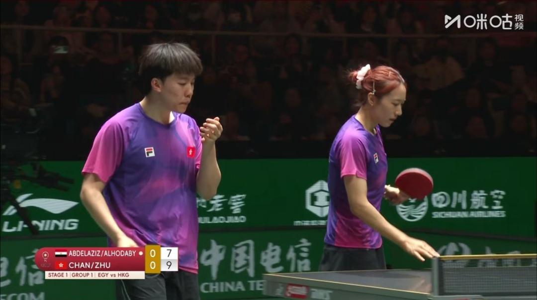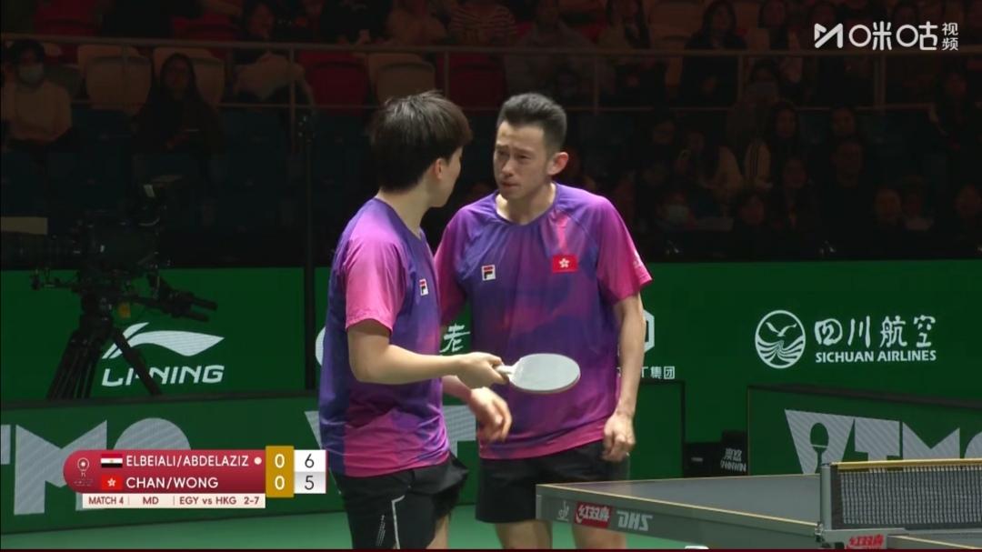 热烈祝贺中国队携手中国香港队晋级第二阶段循环赛! 成都混合团体世界杯 A组两场比赛从19:00开始 A组最后一轮,第二个出线名额之争是焦点之战! T2台 中国香港队8:2大胜埃及队 第一盘混合双打 陈颢桦/朱成竹2:1(11-7;7-11;11-6)胜埃及阿齐兹/玛利亚姆。 19:38结束。 第二盘女单 杜凯琹3:0(11-9;11-7;12-10)零封埃及汉娜•高达。 汉娜•高达赶来了,未能救主! 杜姐打得韧性十足! 20:11结束。 第三盘男单 黄镇廷2:1(11-4;7-11;11-6)胜埃及阿萨尔。 20:35分钟结束。 第四盘男双 黄镇廷/陈颢桦1:0(11-8)胜埃及阿齐兹/埃尔贝亚利。 20:50结束。 中国香港队整个比赛耗时110分钟! A组,另一场最后一轮。 T1台 中国队8:0零封智利队 第一盘混合双打 林诗栋/蒯曼3:0(13-11;11-3;11-3)零封智利博格斯/维加。 19:28比赛结束 第二盘女单 王曼昱3:0(11-4;11-4;11-8)零封智利奥尔特加 19:52结束 第三盘男单 梁靖崑2:0(11-6;11-2)零封智利戈麦斯。 20:08结束。 中国队耗时仅68分钟! 热烈祝贺中国队携手中国香港晋级第二阶段循环赛!
