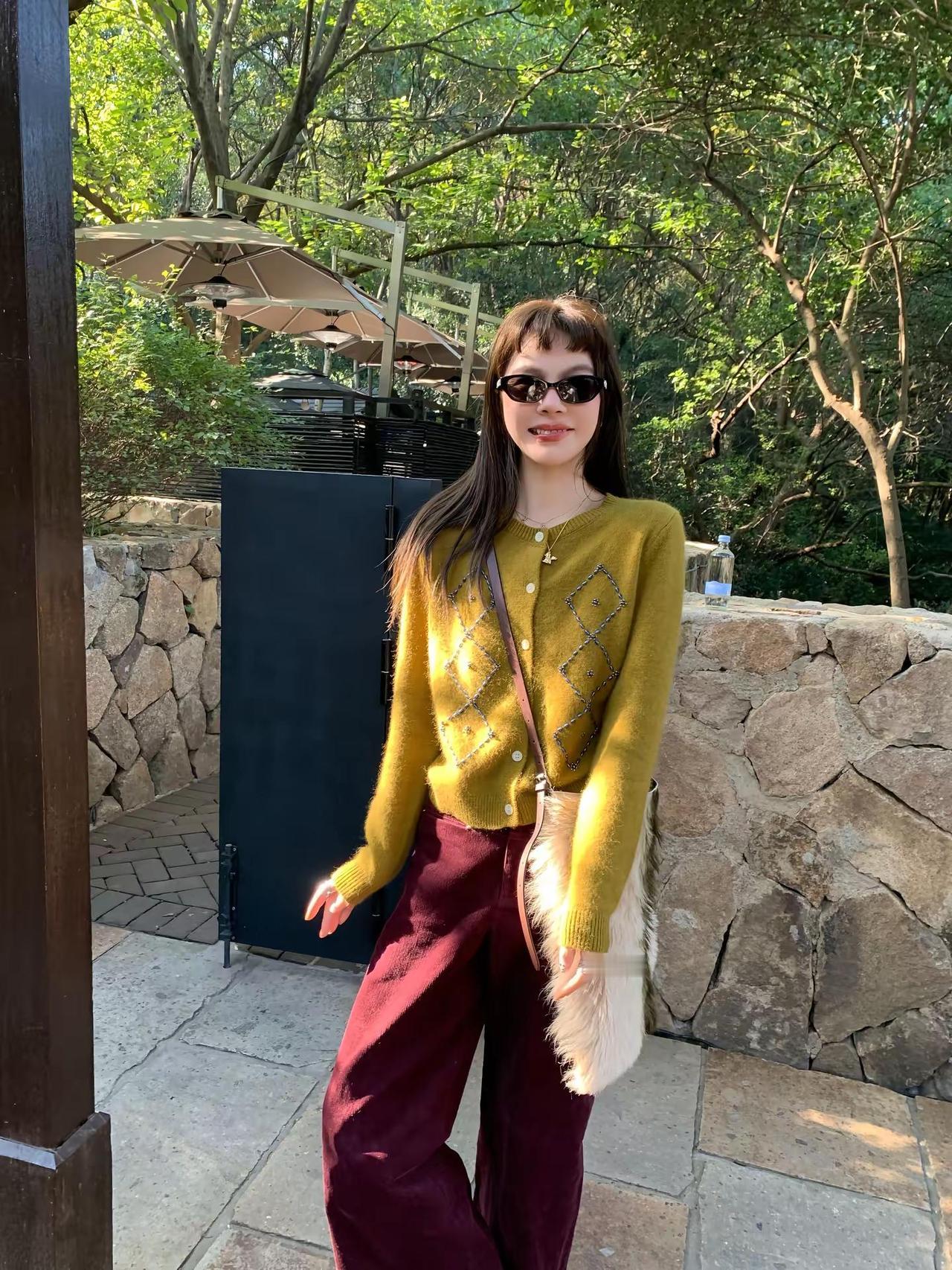 “阳 光 沁 染”属于复古文艺的悠长余韵 在针织上绽放新鲜的风格张力有对复古韵味的眷恋 也深深镌刻对不费力却有质感的追求稳稳的描写属于针织的风格这款剪裁是经典圆领 领口柔和地贴合颈部线条同时松弛下来更适合叠穿 有非常充足的搭配空间🥂LEROUGE周美美 秋冬穿搭