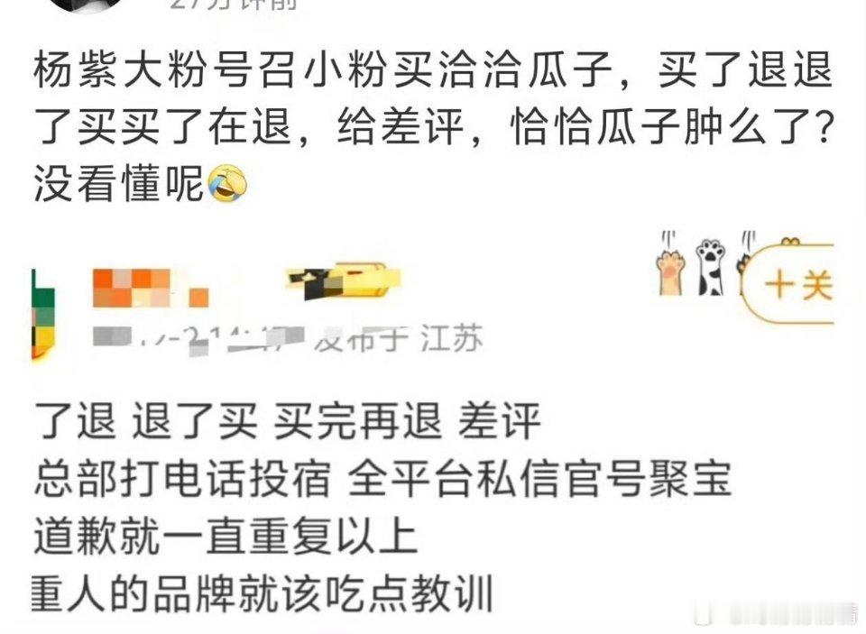 洽洽瓜子 洽洽瓜紫人家发了这个文案,不知道怎么惹到紫米了,还要求品牌道歉 洽洽瓜子疑似内涵杨紫