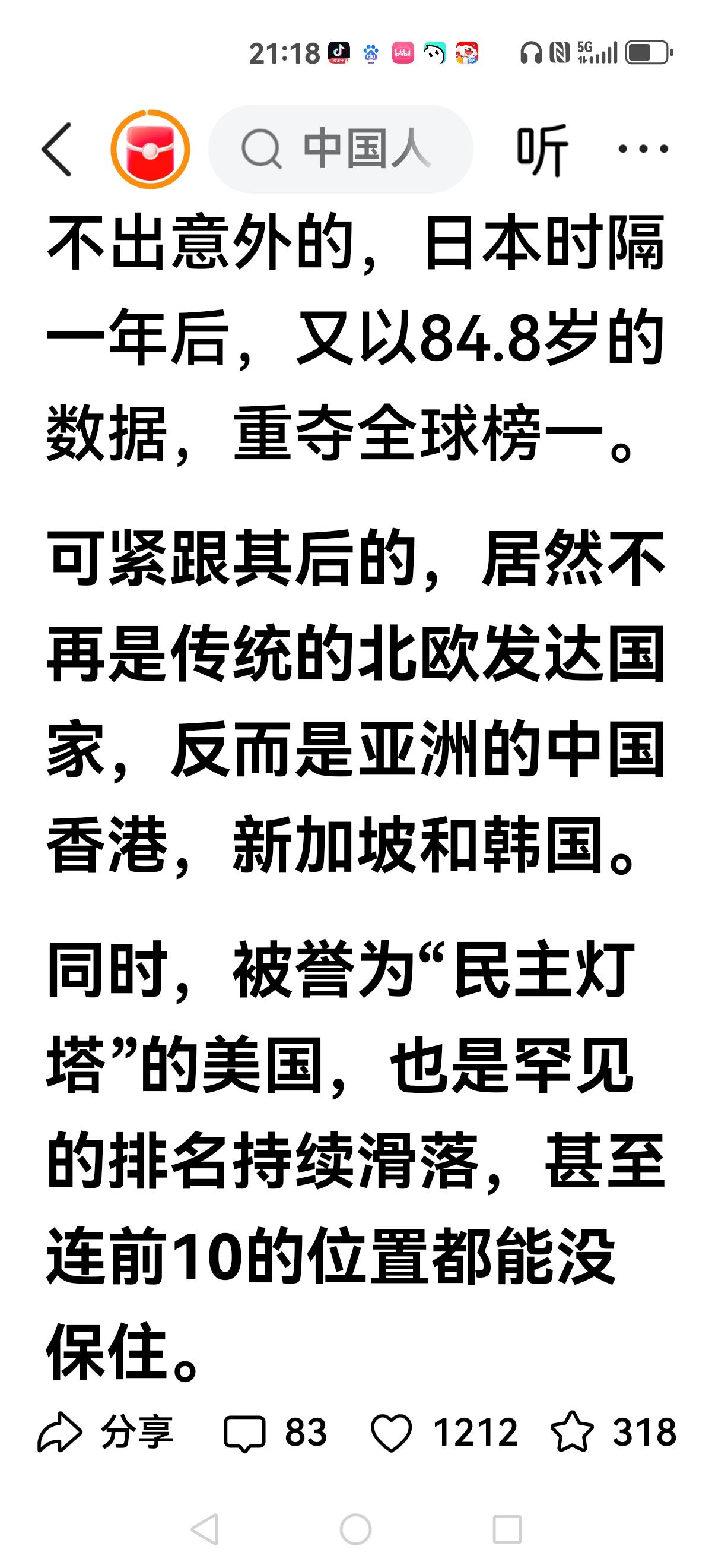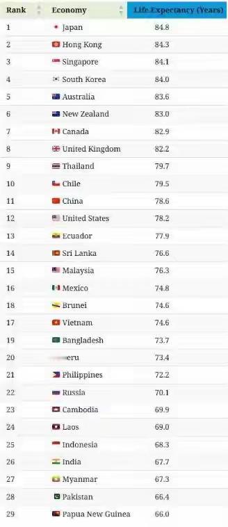 【张维为说对一条】 联合国人类发展署公布2024年全球各国人均预期寿命指标。 日本重回冠军宝座,我们力压美国,排列第十一位,看来美国下滑厉害。 张维为曾经说上海比纽约好,其中指出人均寿命的问题,看来这次说对了。