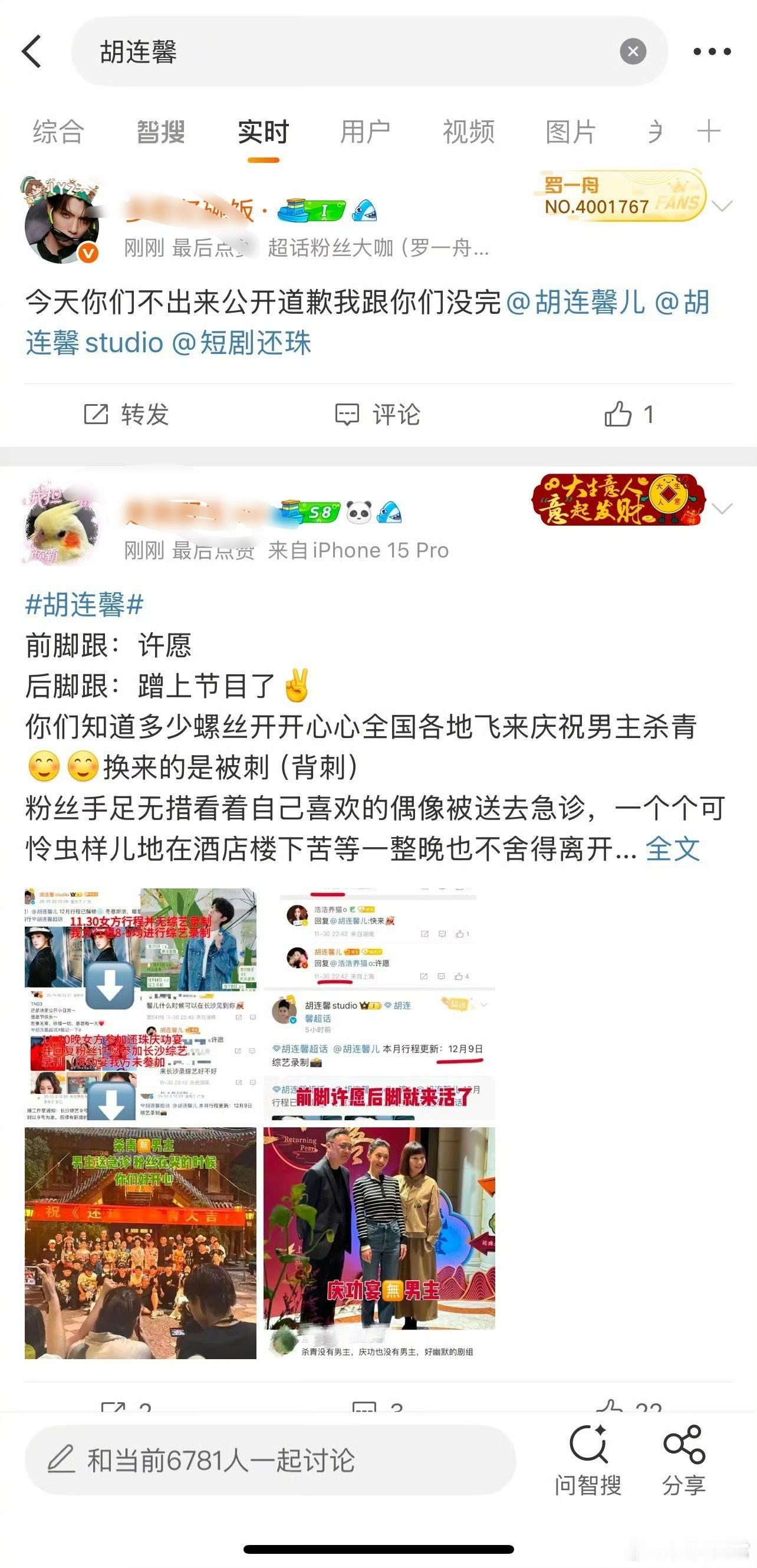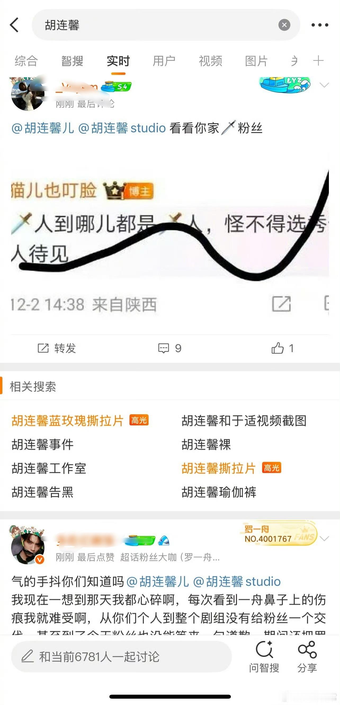 罗一舟粉丝要求胡连馨道歉