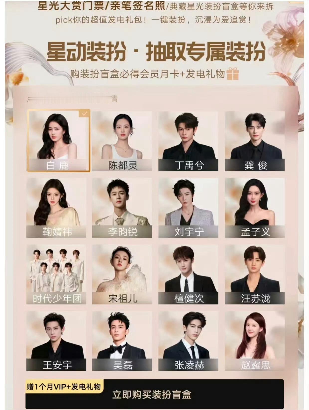 星光大赏活动开始了哦白鹿 陈都灵 丁禹兮 龚俊 鞠婧祎 李昀锐 刘宇宁 孟子义 时代少年团 宋祖儿 檀健次 汪苏泷 王安宇 吴磊 张凌赫 赵露思,这几个都已经确定参加了。