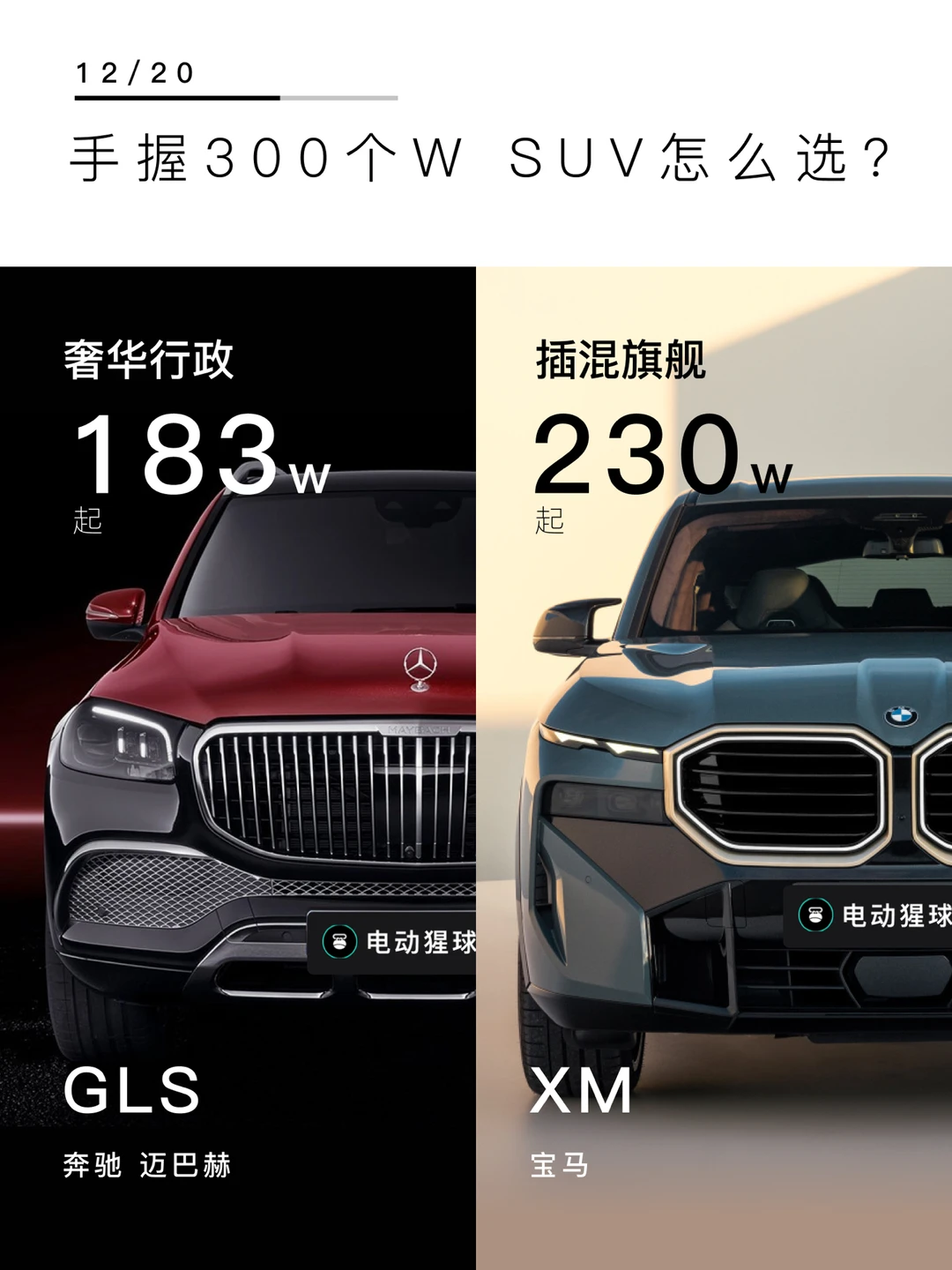 油车时代旗舰SUV天花板迈巴赫GLS,对上插混宝马旗舰XM,手握300个W,你怎么选?
