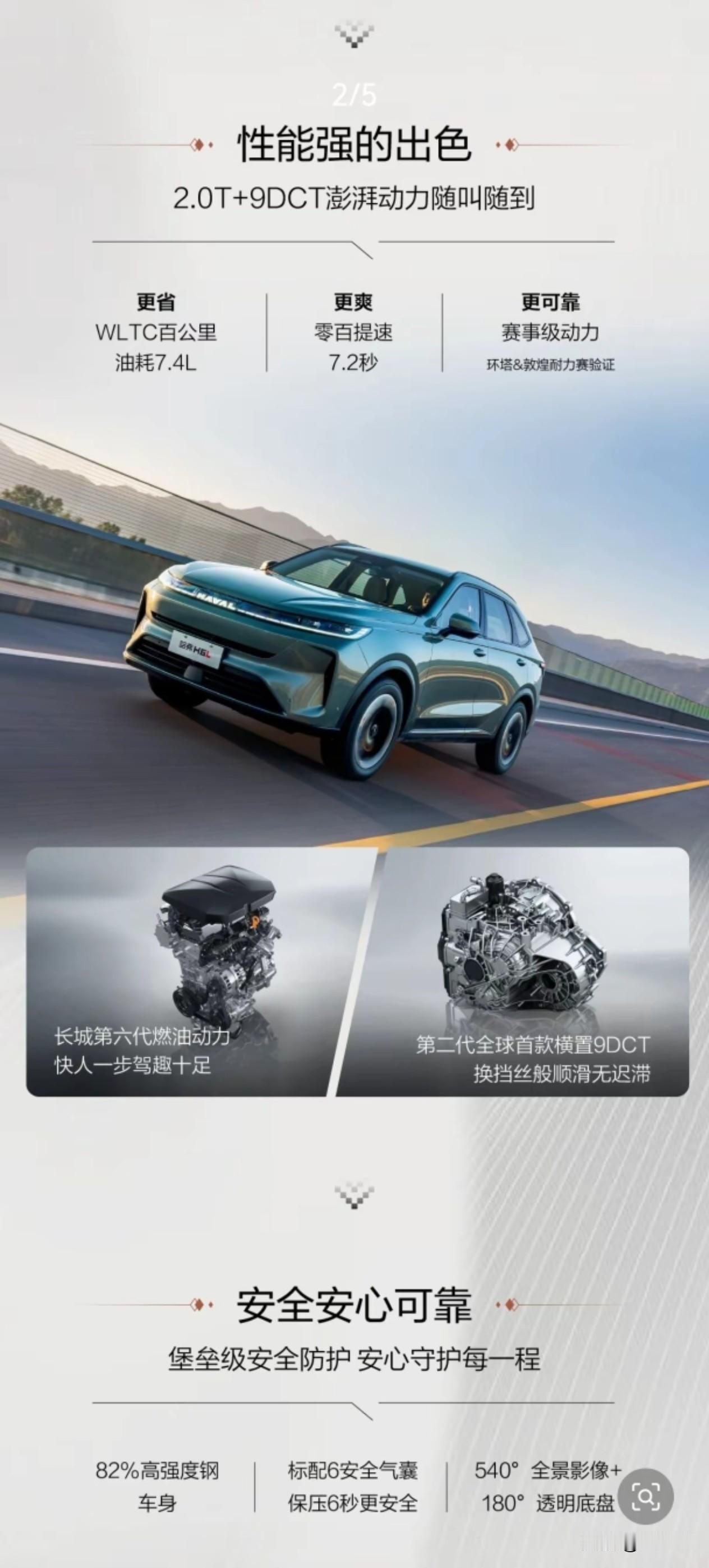 哈弗H6L的“硬核技术”,堪称传统燃油车在电驱时代的一次精准防守反击。其核心的第六代2.0T+9DCT动力组合,借助米勒循环与9个挡位,硬是将油耗降至7.4L,力图摆脱“油老虎”的标签,实则是与混动阵营的近身搏斗。车身82%采用高强钢,搭配全框副车架,这是“看不见的用料实在”,在安全方面尽显诚意。 不过,必须坦率指出:在10万级市场,这些技术亮点本质上是成熟平台的“越级倾销”。它真正的硬核之处,在于凭借燃油车可靠的体系和极致的成本控制,为那些对电车心存顾虑的家庭,提供了一个无可挑剔的“实用主义”之选。这并非技术革命,而是一场教科书级别的市场定位之战。