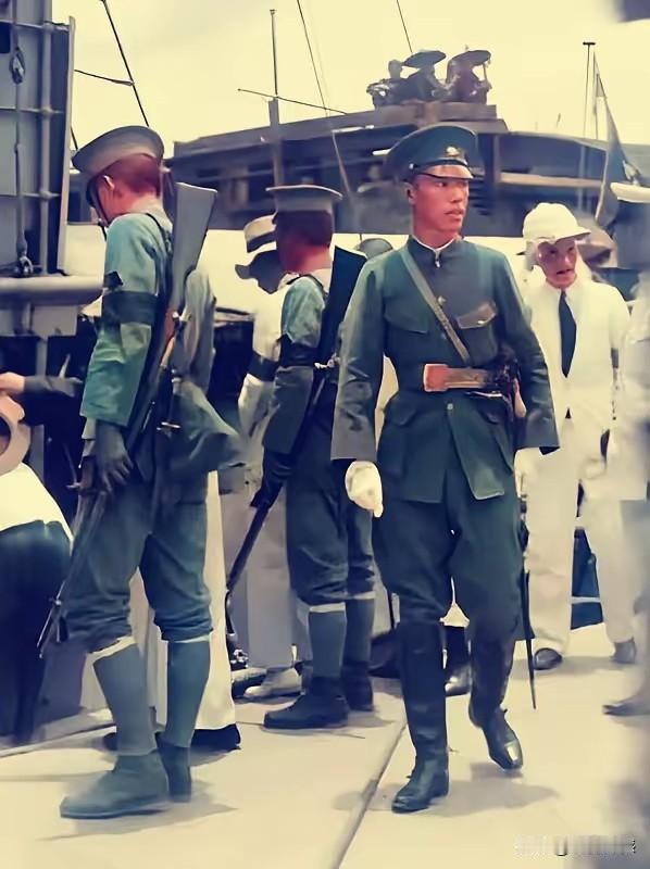有人说正对着镜头的这个人,是北伐时的老蒋,不过用我的视角来看的话,99%不是他,因为照片中的这个人长得和他一点都不像,包括脸型,包括眼睛,包括嘴,差距都非常大,这个人没有他长的精神,不过在那个时候,他们并没有穿草鞋,而是穿着皮靴,这是很能说明问题的!