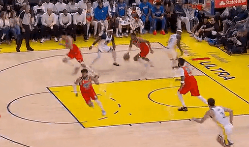 NBA常规赛,勇士对阵雷霆的比赛正在进行中。