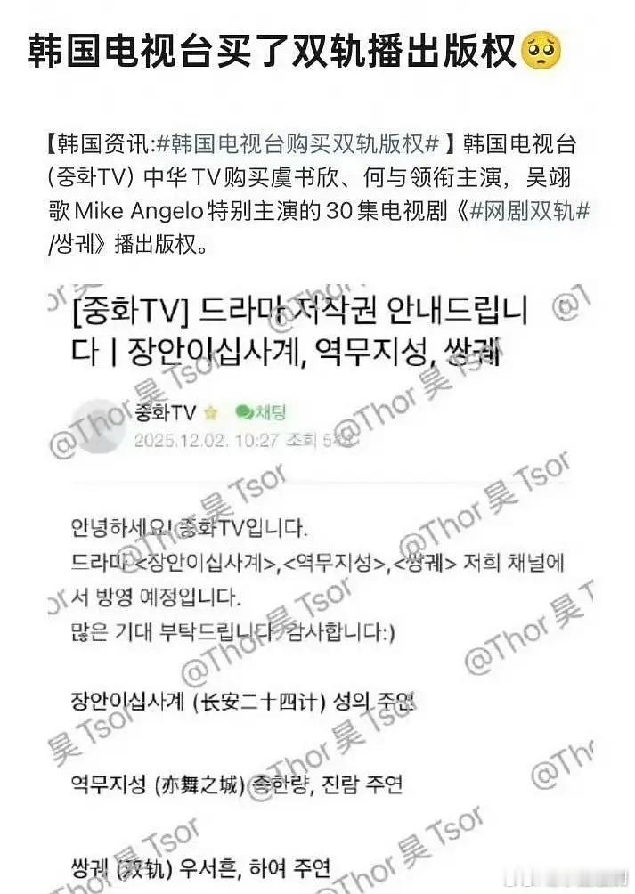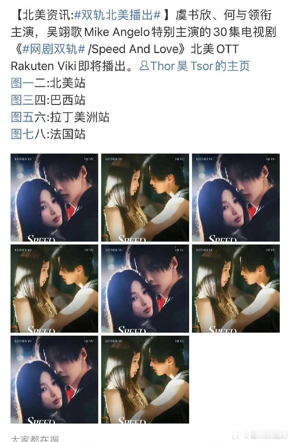 虞书欣《双轨》还没播就被韩国买了版权,按时间顺序北美、南美、欧洲、亚洲有多个国家都要播出,这个轨怎么环球播了!已经迫不及待想看了...