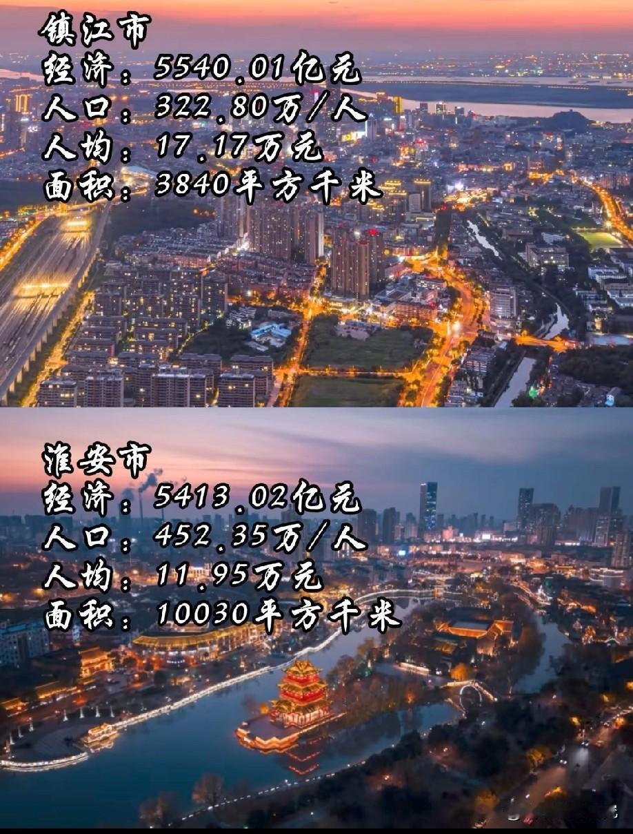 镇江市经济与淮安市经济对比情况,从图片数据可以看出镇江市无论是经济总量还是人均经济质量现在都要比淮安市更高一些。