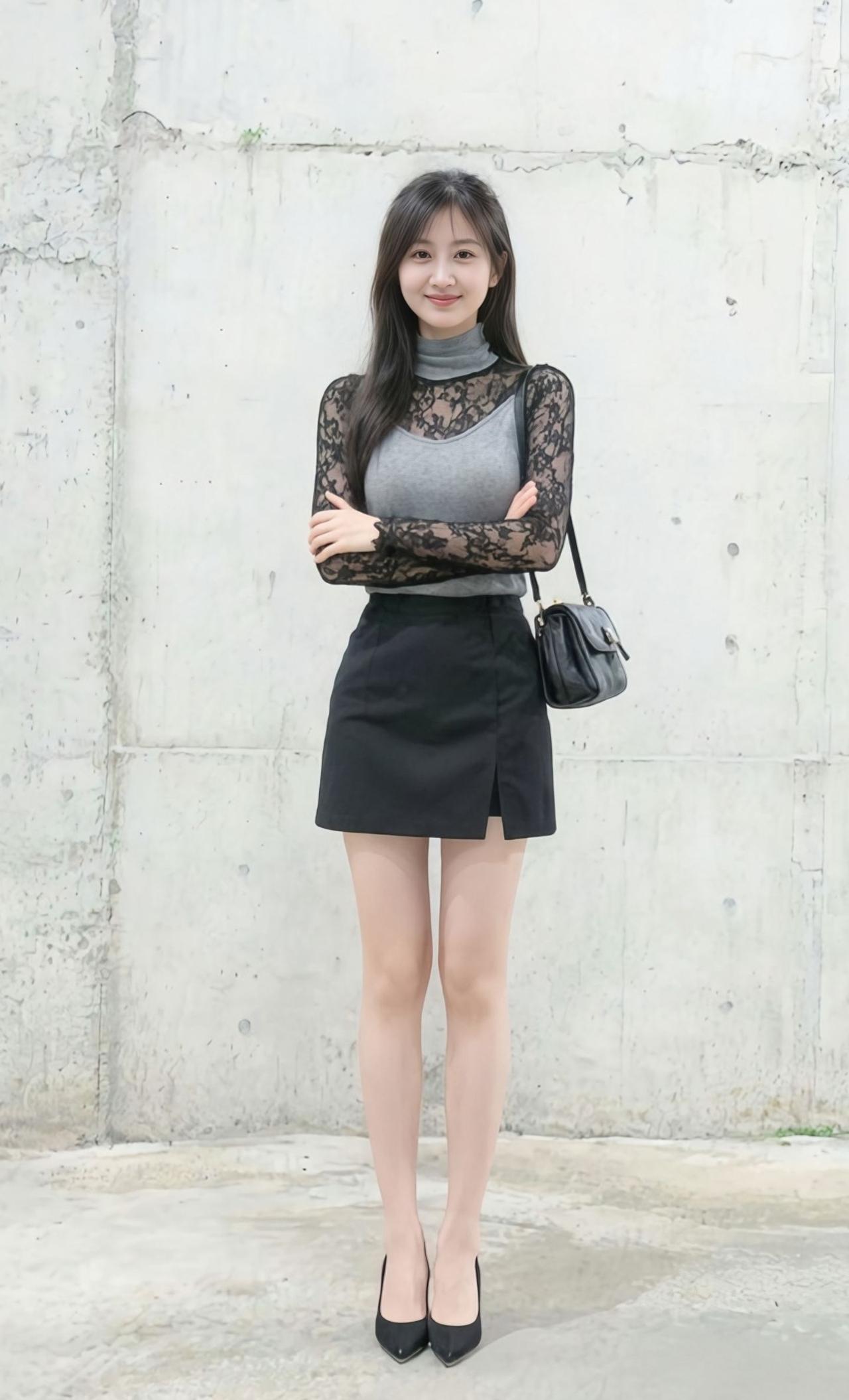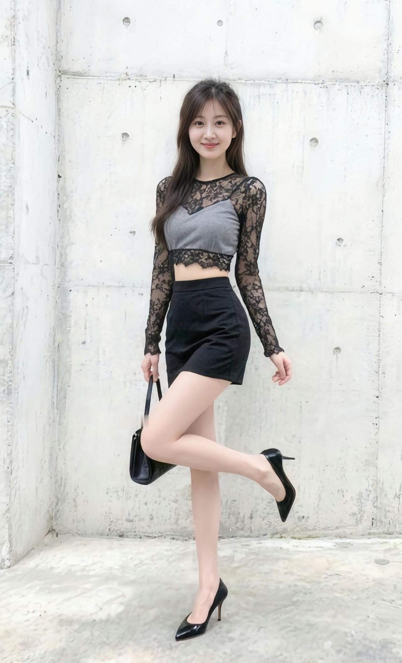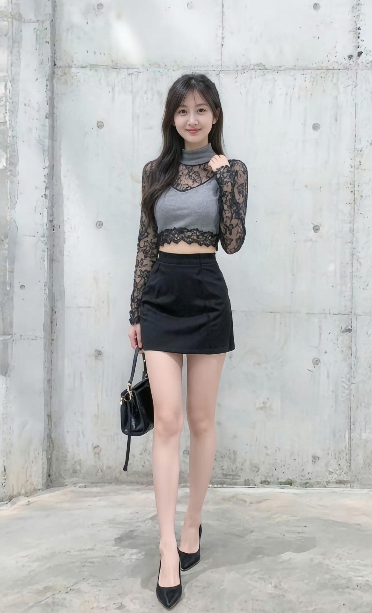 甜美少女风穿搭,黑色蕾丝上衣搭配短裙,优雅迷人!