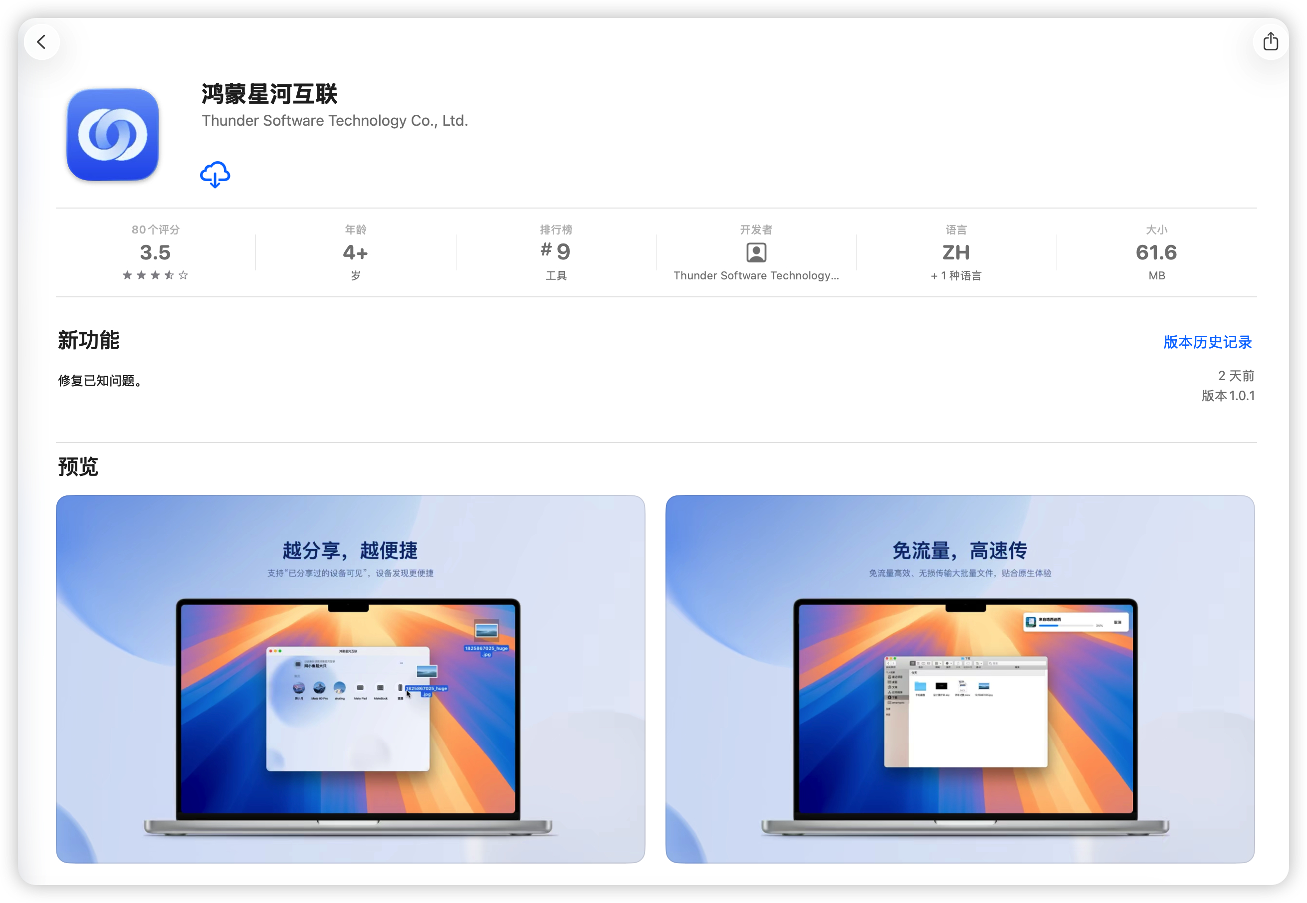 华为苹果实现三端全面互通 今天「鸿蒙星河互联」App 的 Mac 版也正式上架了