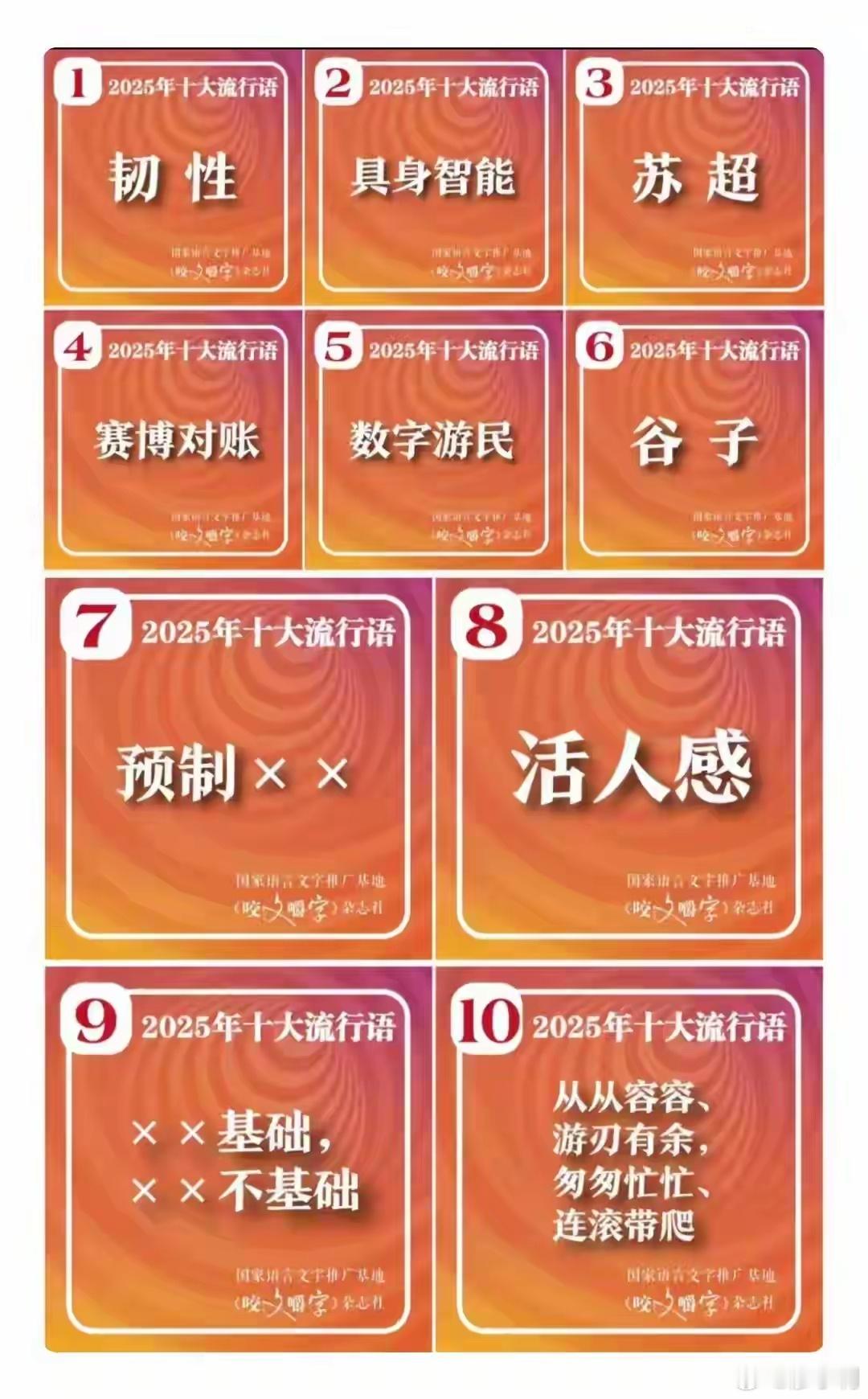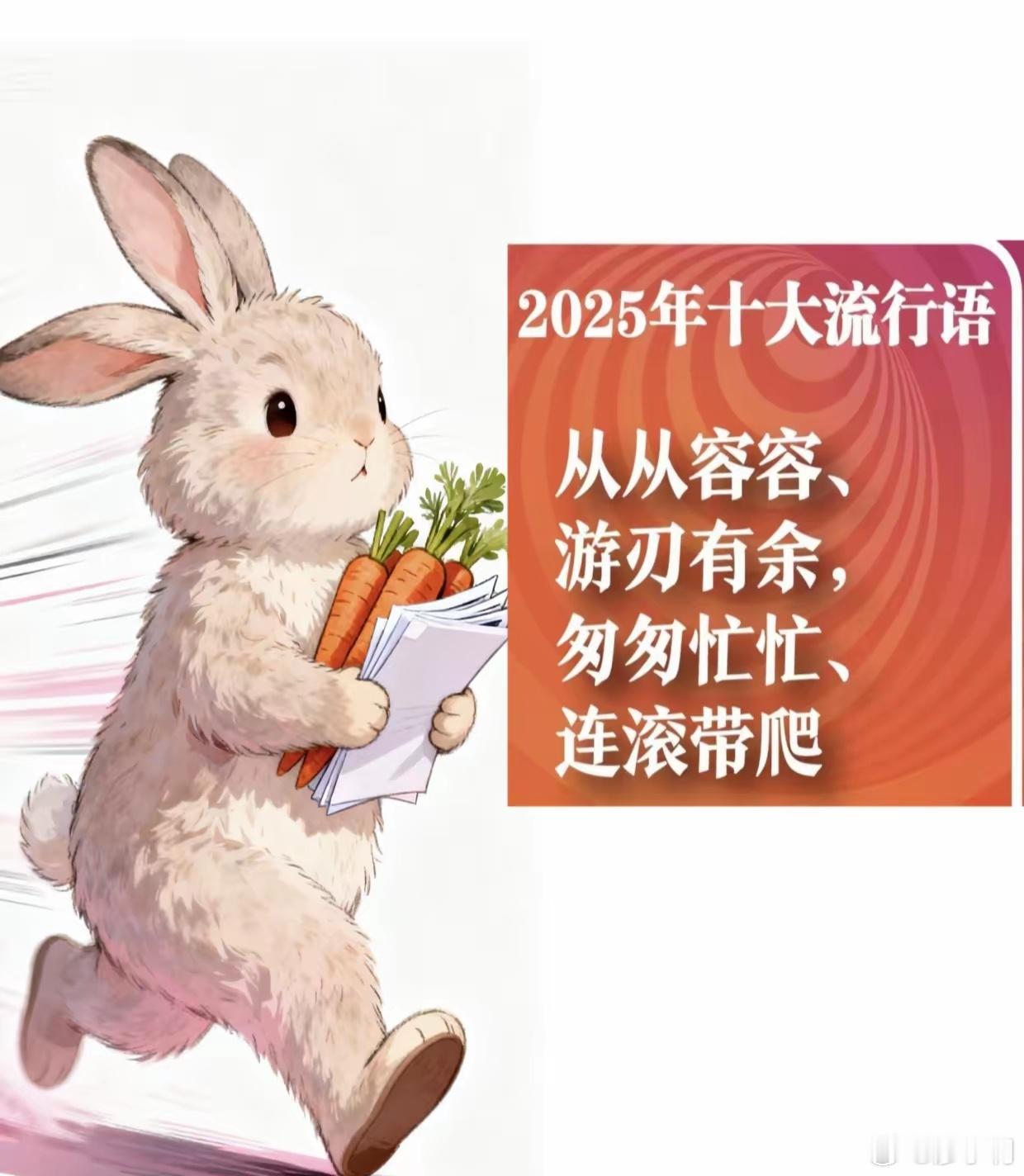 2025十大流行语这十大流行语我还是喜欢最后一个。一半写着“从从容容、游刃有余”,那是我们向往的样子,另一半写着“匆匆忙忙、连滚带爬”,这不就是每天的我吗? 想活得像个优雅的智者,最后总跑成气喘吁吁的兔子。新的一年希望你我都能多几分游刃有余,少一些连滚带爬。热点观点