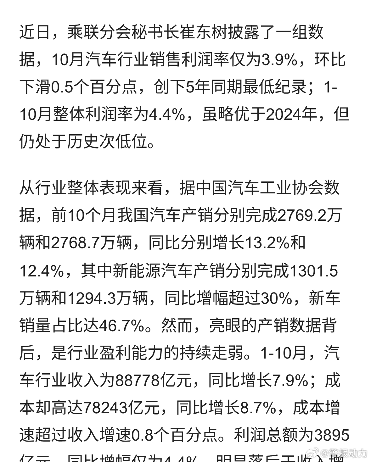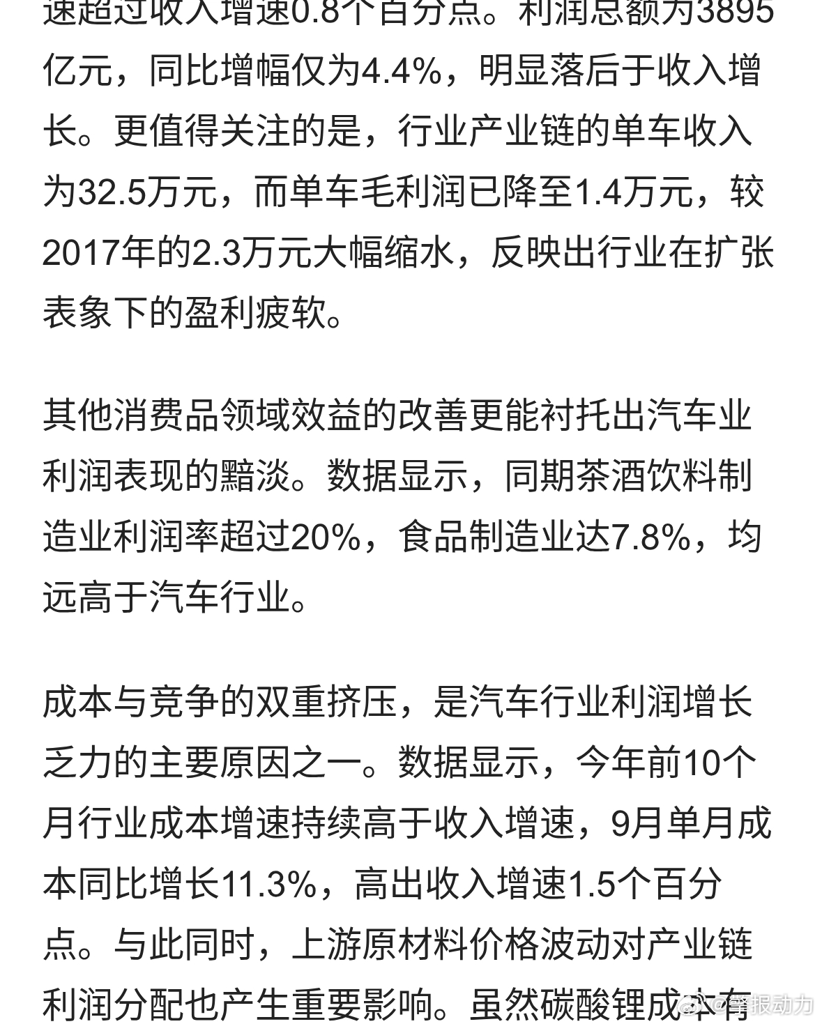 卖车难赚钱10月汽车行业销售利润率仅3.9%