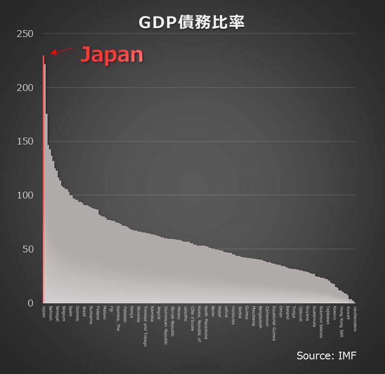 为了确保万无一失,我查看了国际货币基金组织的网站,想看看债务与GDP比率之类的数据,但结果显示日本位居世界第一。