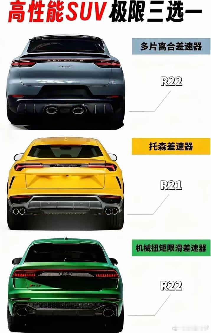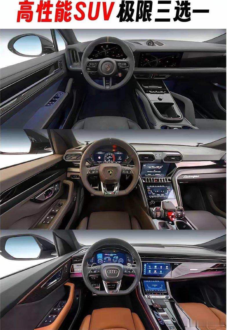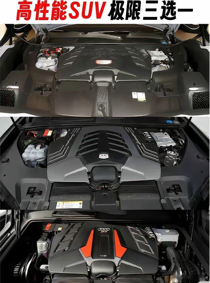 高性能 SUV 三强,你选谁?🚗💥高性能 SUV 三强,你选谁?🚗💥保时捷卡宴 Turbo GT,4.0T V8,零百 3.3 秒,动力猛还带感兰博基尼 Urus,同样 4.0T V8,零百 3.6 秒,颜值和性能都在线✨。奥迪 RSQ8,4.0T V8 加轻混,零百 3.8 秒,性价比也不错。从动力到配置,各有亮点,要是你,会 pick 哪台?