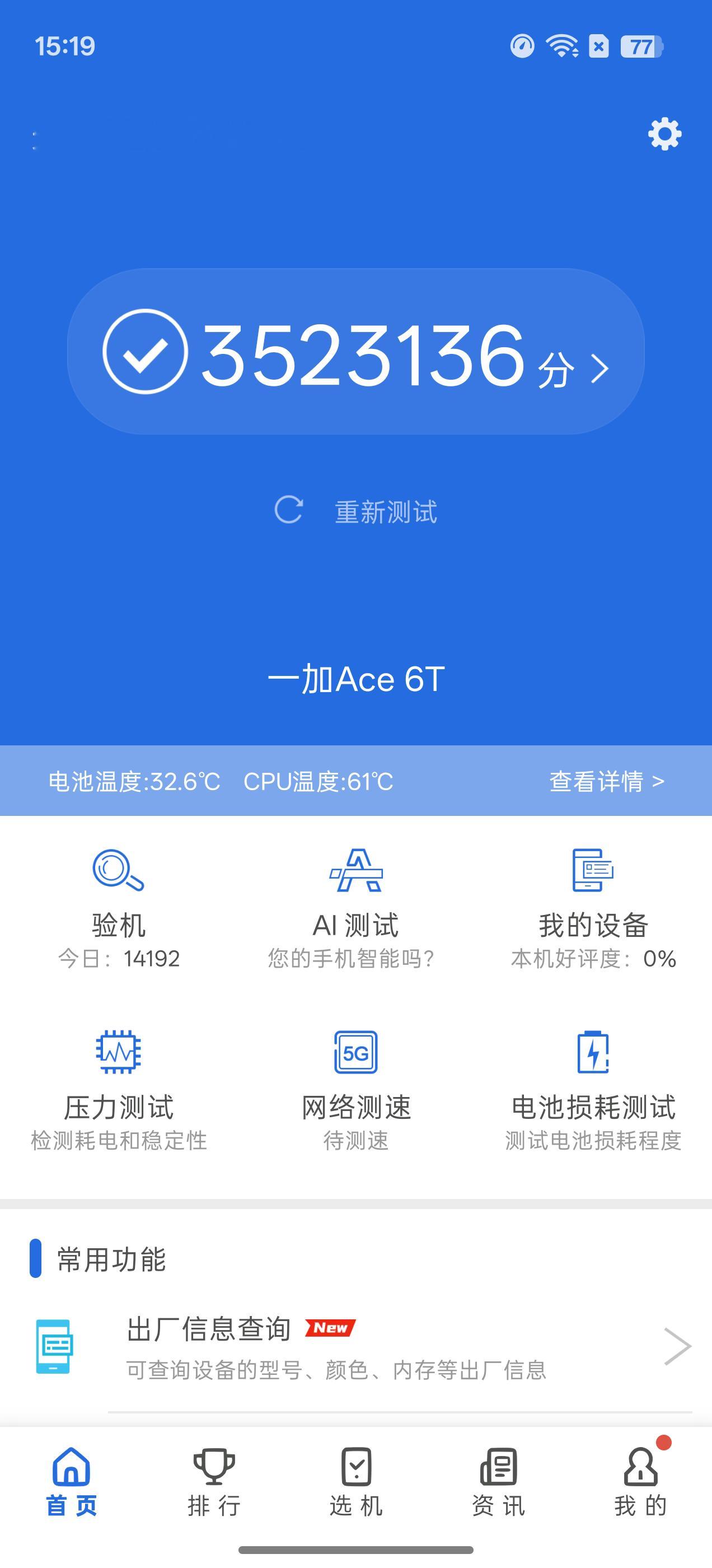 兄弟们,一加 Ace 6T 这性能,真的有点“犯规”了!刚拿到手随手跑了个分,好家伙,安兔兔直接干到352万以上!首发骁龙8 Gen5芯片,配合自研的游戏内核,调校得相当激进。实际体验更离谱:《原神》半小时测试,平均帧率竟然能稳在121帧,全程满帧还不烫手;《王者荣耀》直接144帧拉满,团战丝滑得不像话。这种极致流畅,还得靠它那块同档位唯一的165Hz高刷屏。如果你玩吃鸡这类FPS游戏,从120Hz跳到165Hz,那种丝滑感和跟手性的提升,简直是物理外挂!加上灵犀触控和手柄级陀螺仪,压枪手感特别粘手。而且它边玩边充也不怕烫,旁路供电功能让电流直接给手机供电,不经过电池,机身温度控制得相当好。如果你是个重度手游玩家,这台机器绝对能给你带来桌面级的游戏体验。一加Ace6T一加Ace6T新品发布
