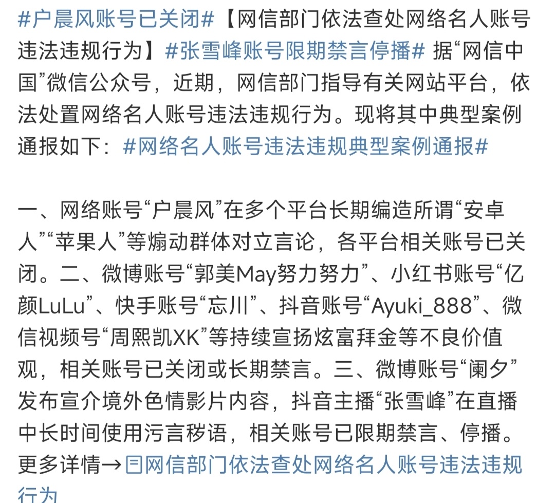 网信部门处置名人账号名人账号“翻车”被处置,实则是对公众利益的有力守护。部分名人利用影响力煽动对立、虚假宣传、偷税漏税,既破坏市场公平,又侵蚀社会信任。网信部门的出手,正是回应了公众对公平正义的期待,打破了“名人特权”的幻想。网络空间不是法外之地,流量不能成为违法违规的“保护伞”,唯有严惩乱象,才能还公众一个风清气正的网络环境,让正能量占据主流。