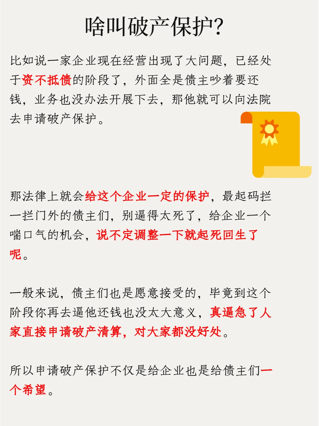 那我们今天要讲的破产保护其实就跟这意思差不多。