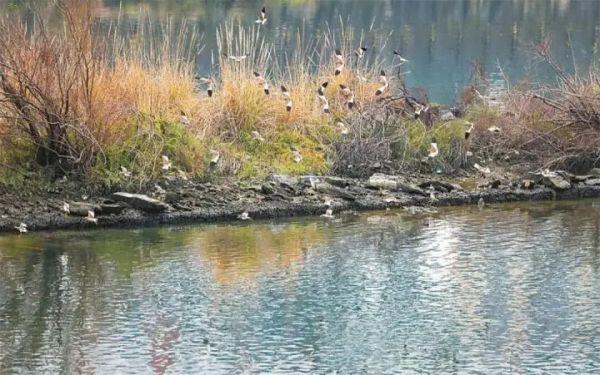 图为玉屏侗族自治县㵲阳河国家湿地公园内,灰头麦鸡在岸边停歇觅食。
