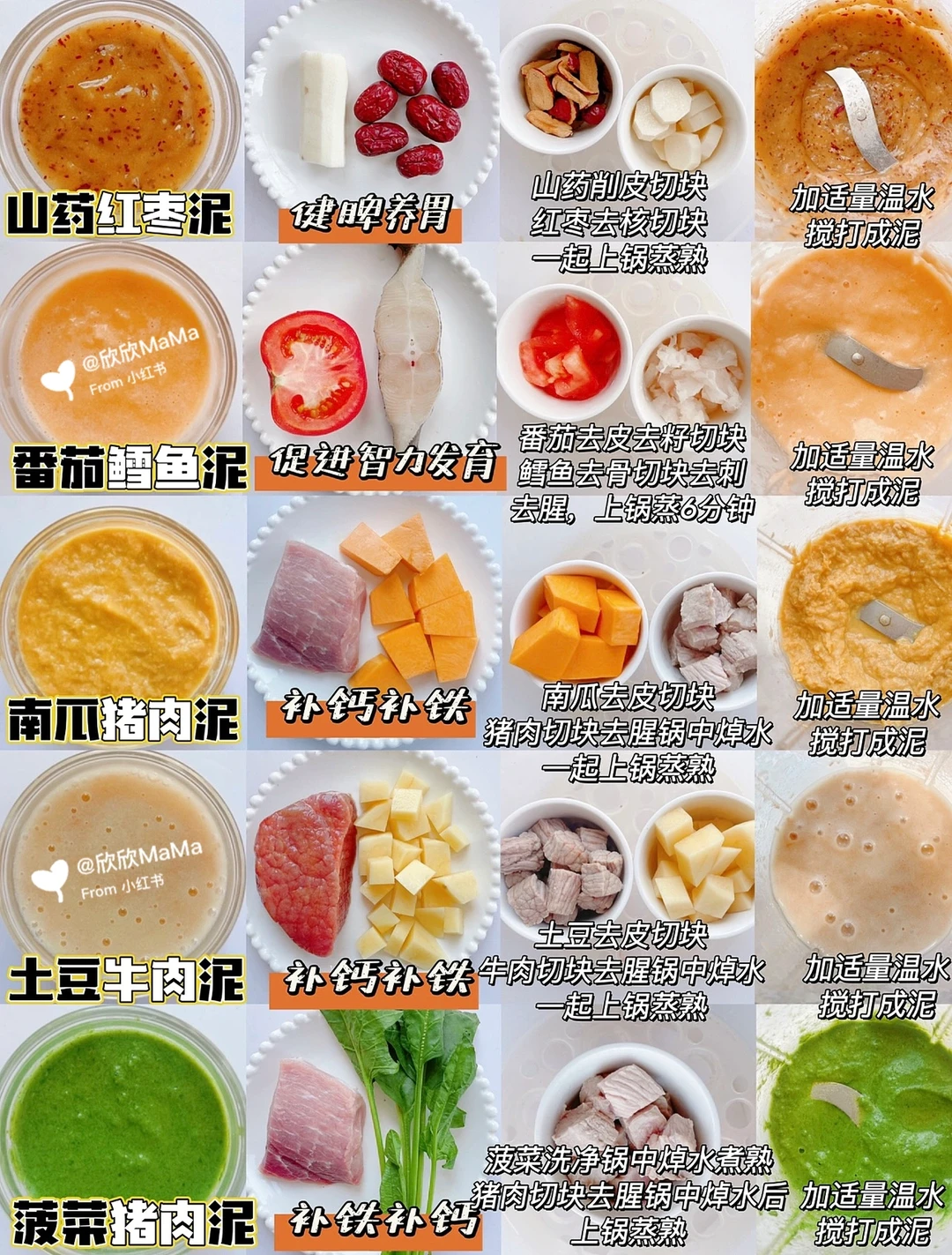 今天整理40种辅食泥,有根筋泥、菜泥、肉泥、混合泥的详细做法和保存方法!帮助新手妈妈解决初期添加辅食的烦恼!