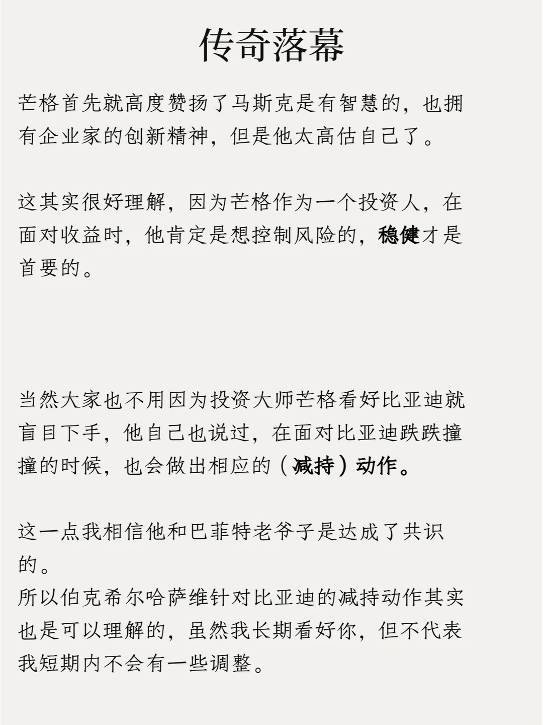 这其实很好理解,因为芒格作为一个投资人,在面对收益时,他肯定是想控制风险的,稳健才是首要的。