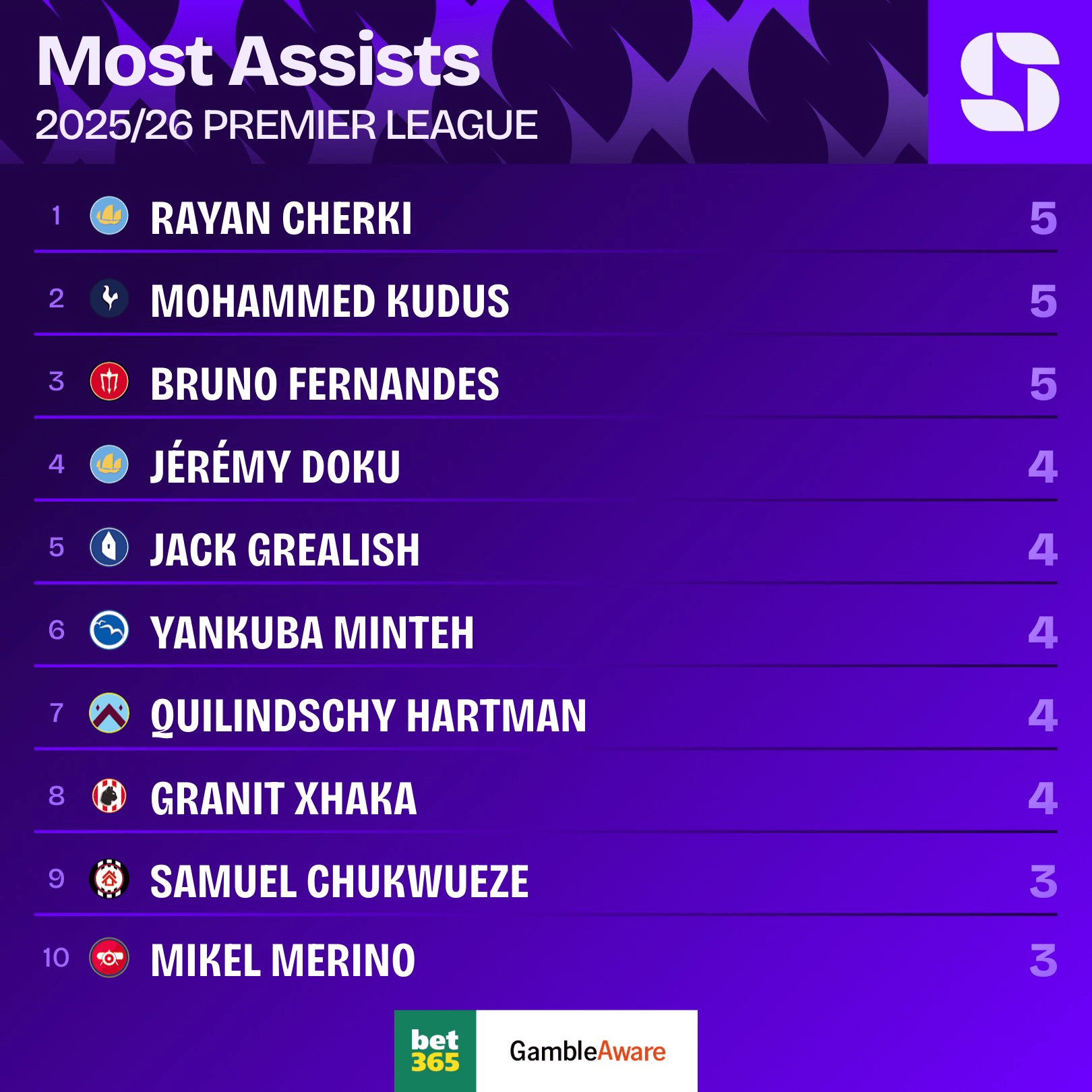 与他同为5次助攻的两位球员B费和库杜斯分别出战了1252和1213分钟的英超联赛,而谢尔基本赛季至今只踢了398分钟英超,平均每出战79.6分钟就能助攻一次。