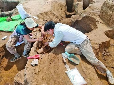 发掘中最为复杂的遗迹非瓮棺莫属了(瓮棺葬是以瓮、盆类陶器为葬具的古代墓葬形式,主要用于埋葬未成年个体,少数成人亦有使用。编者注)。我们不仅需要对瓮棺葬绘制多张图纸,而且其清理难度高,不论是瓮棺还是里面的儿童遗体,多是一碰就碎的状态,需要格外小心谨慎。