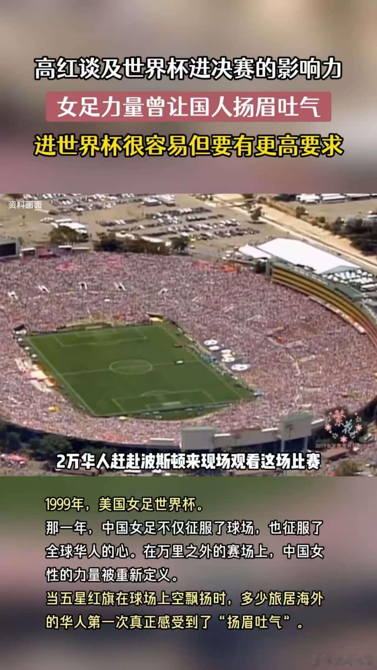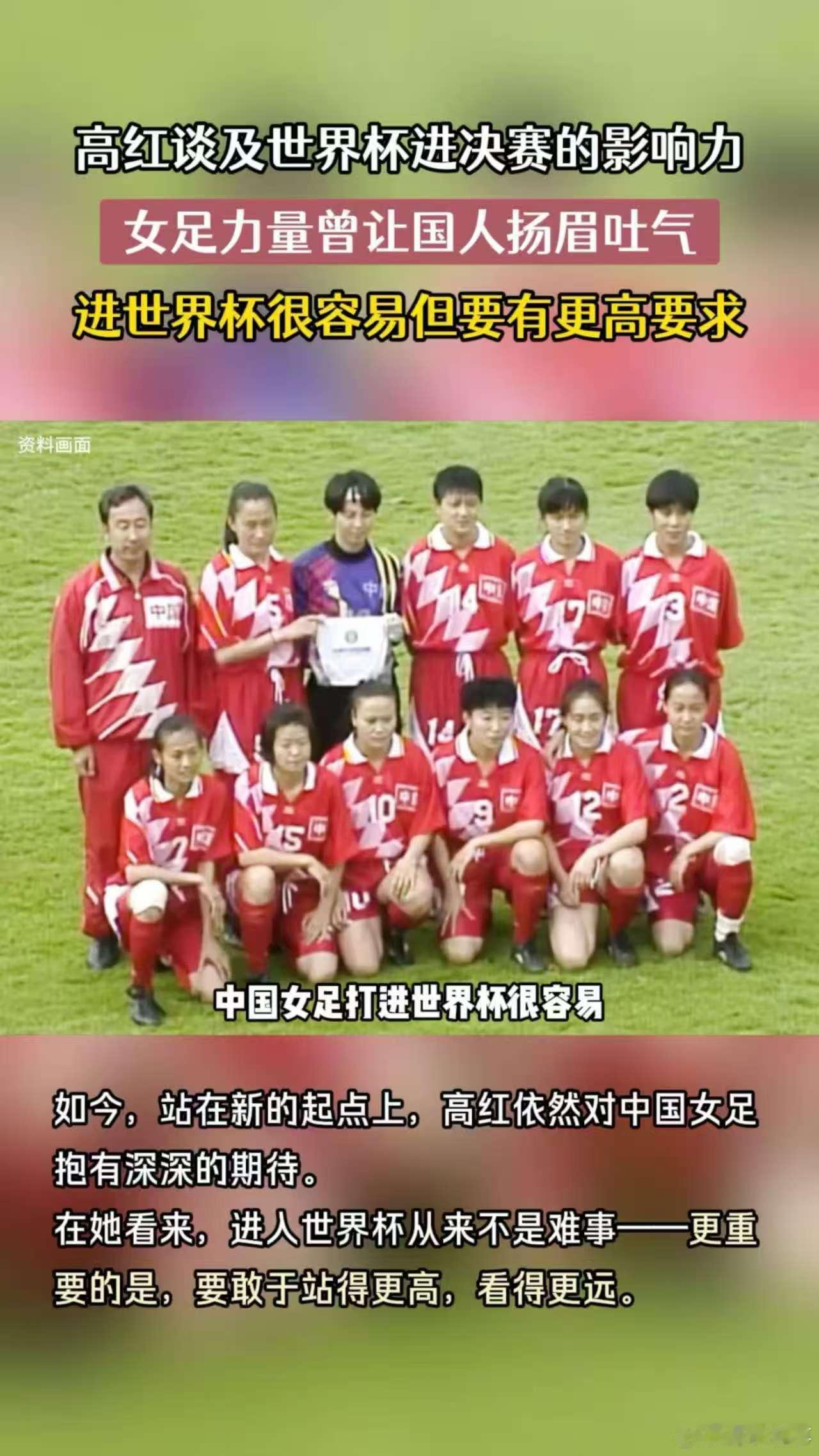 高红说女足力量曾让国人扬眉吐气 高红说,1999年女足世界杯是中国体育史上的高光时刻。半决赛5:0大胜挪威、决赛与美国队鏖战至点球大战的经典战役,不仅让中国女足赢得“铿锵玫瑰”的称号,更成为海外华人的精神支柱。中国女足昔日以赛场辉煌凝聚民族情感,今日需以公益之心培育精神火种。当铿锵玫瑰的基因融入青训血脉,中国女足方能延续“既赢赛场,更赢未来”的传奇。前女足队长称中国女足进世界杯很容易