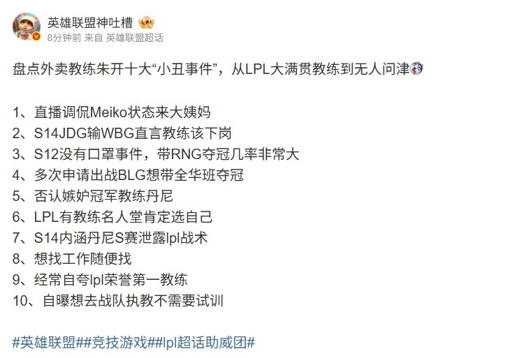 9、经常自夸lpl荣誉第一教练
