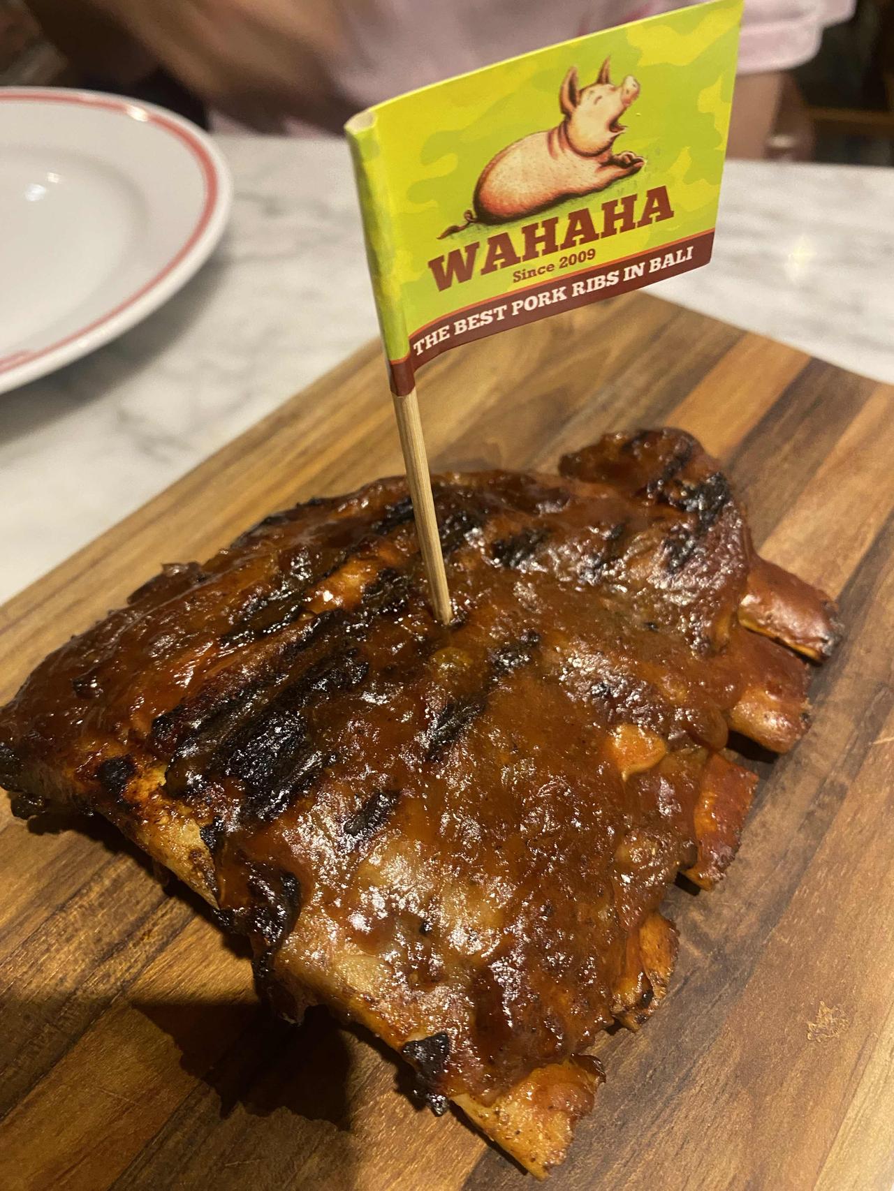 来了巴厘岛好几天了, 明天离开。 来之前都说一定要去吃烤猪肋排。去了网上推荐的三家。 最好吃的是Naughty Nuri,排队40分钟。 肉质紧实,软而不柴,刚刚好。 不沾其他酱汁也可以。 图一和图二 其次是Warung Nia 不用排队,肉酥烂,感觉不是煮过了。 有肥肉和软骨,和上一家的排骨不是同一个部位的。 烤串很好吃。 图三 最后一个是Wahaha , 是的哇哈哈,网上都推荐,不过很失望,排骨不热,酱汁不浓,是不是去太晚了呢? 图四 有去吃过的朋友们,你们喜欢哪一家?