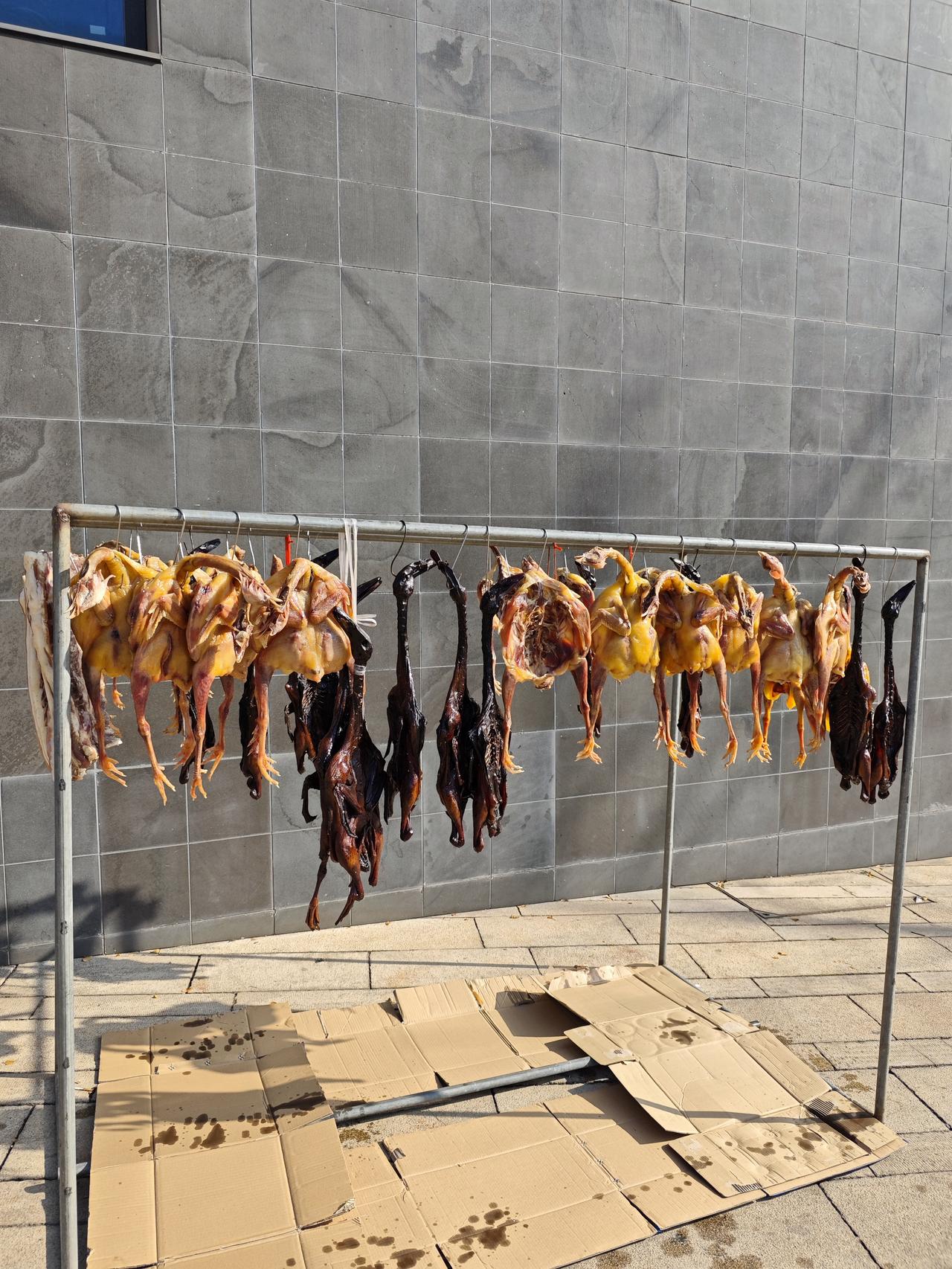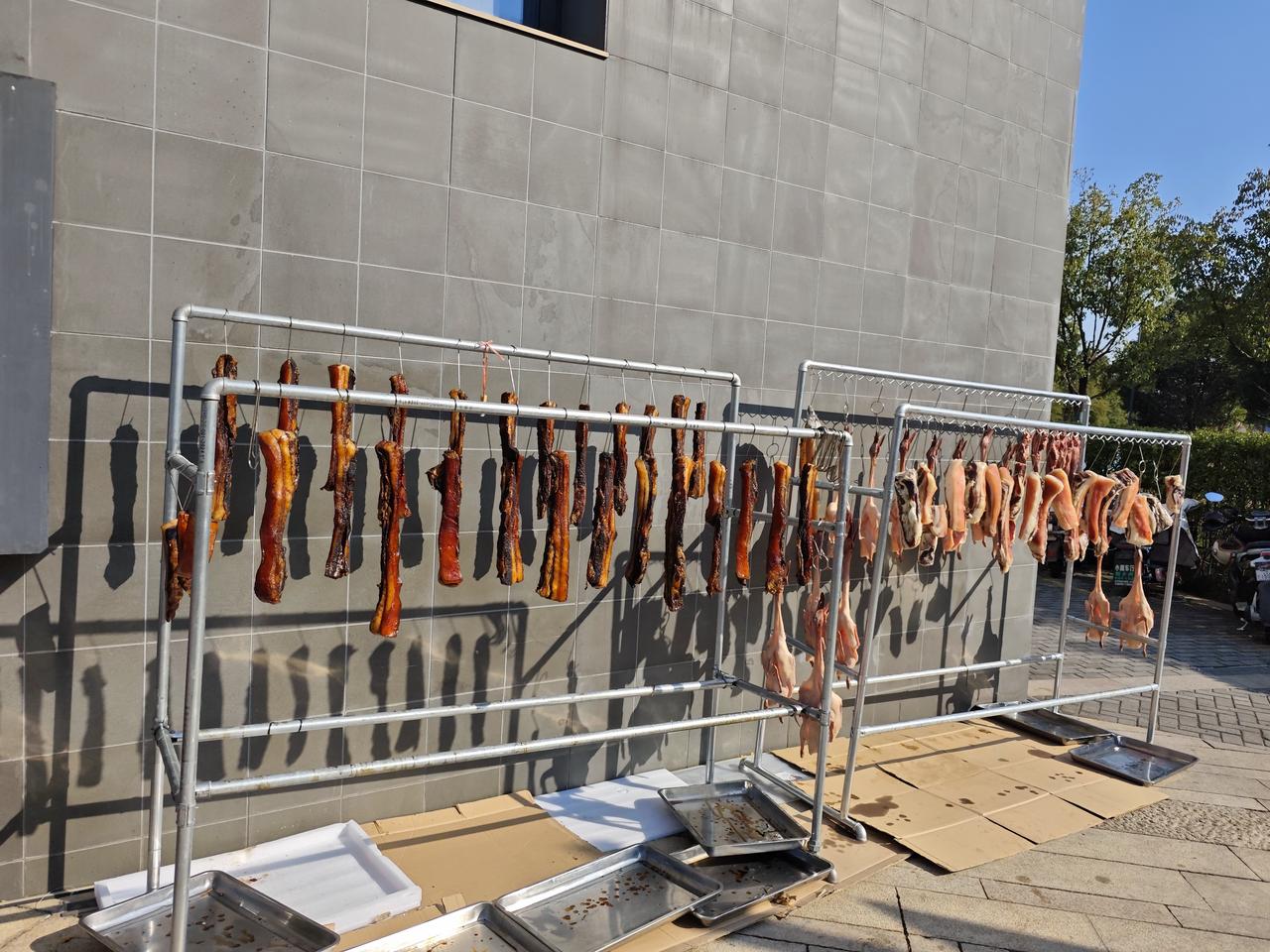 杭州良渚文化村不但风景优美,而且美食多多。很多餐厅门口晒满了腊肉、酱鸭和风干鸡。