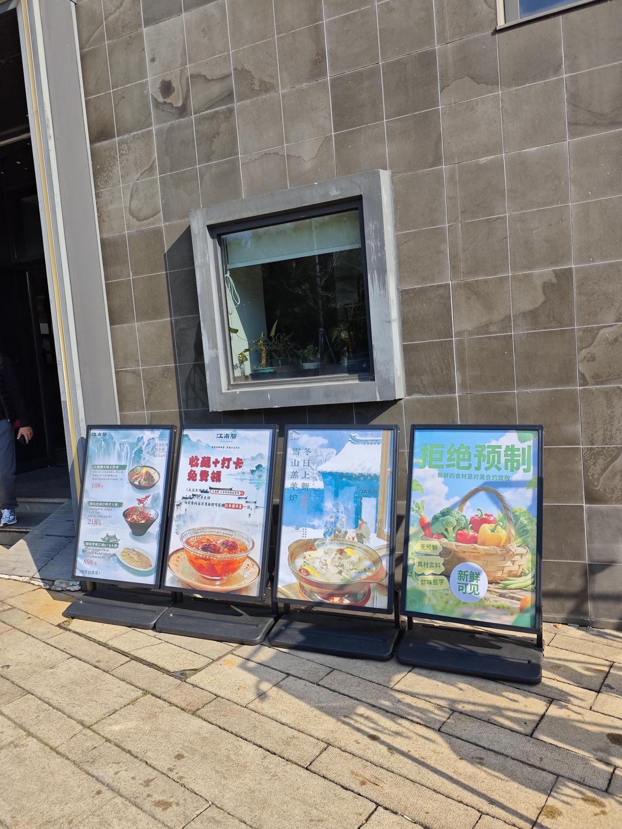 杭州良渚文化村不但风景优美,而且美食多多。很多餐厅门口晒满了腊肉、酱鸭和风干鸡。 双休日很多游客来到良渚参观游览博物馆,中午都会带着家人来这里用餐。