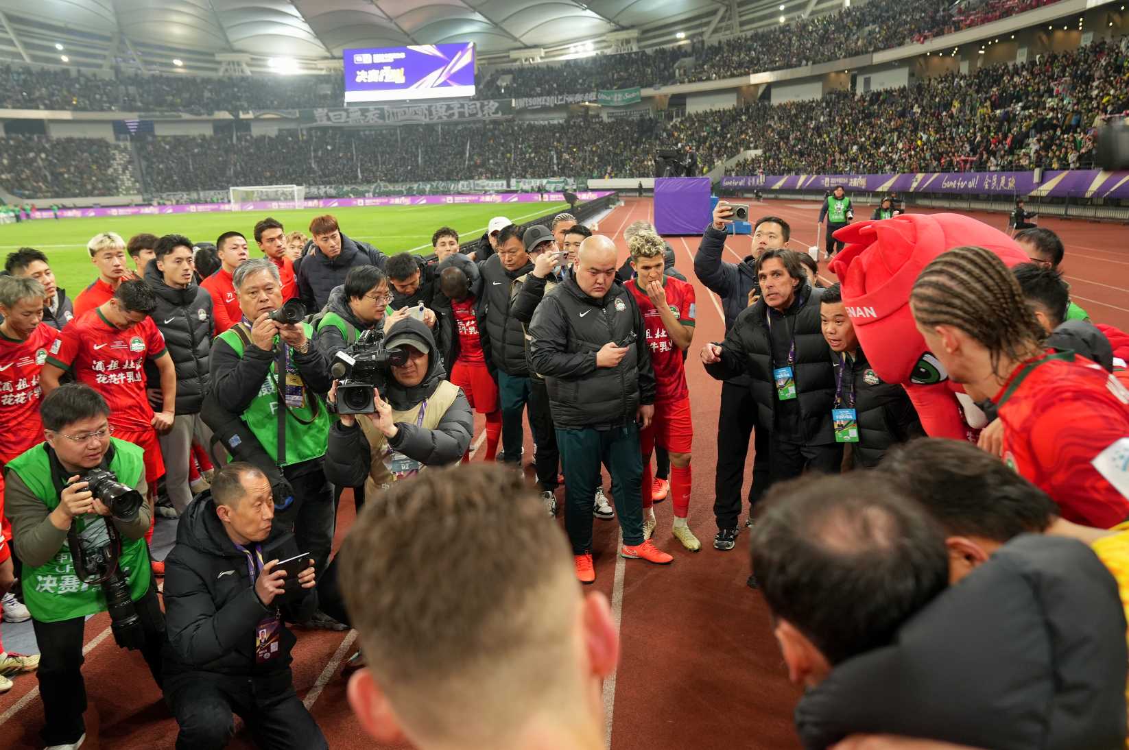 终场哨响,纳萨里奥跪倒在草皮上,用球衣掩住面庞,肩膀无声颤动。王上源、钟义浩、叶力江……他们望向看台上那片依然翻涌的红色海洋,眼中都泛起泪光。