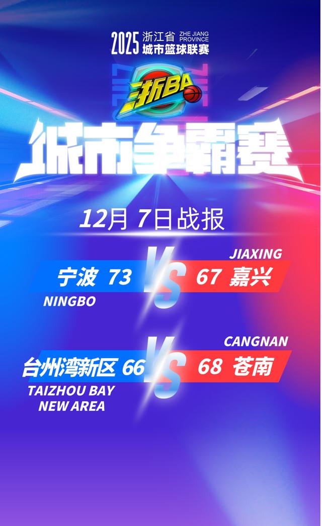 12月7日晚,“浙BA”城市争霸赛第十七轮比赛继续进行,宁波VS嘉兴、台州湾新区VS苍南。最终宁波、苍南获胜!
