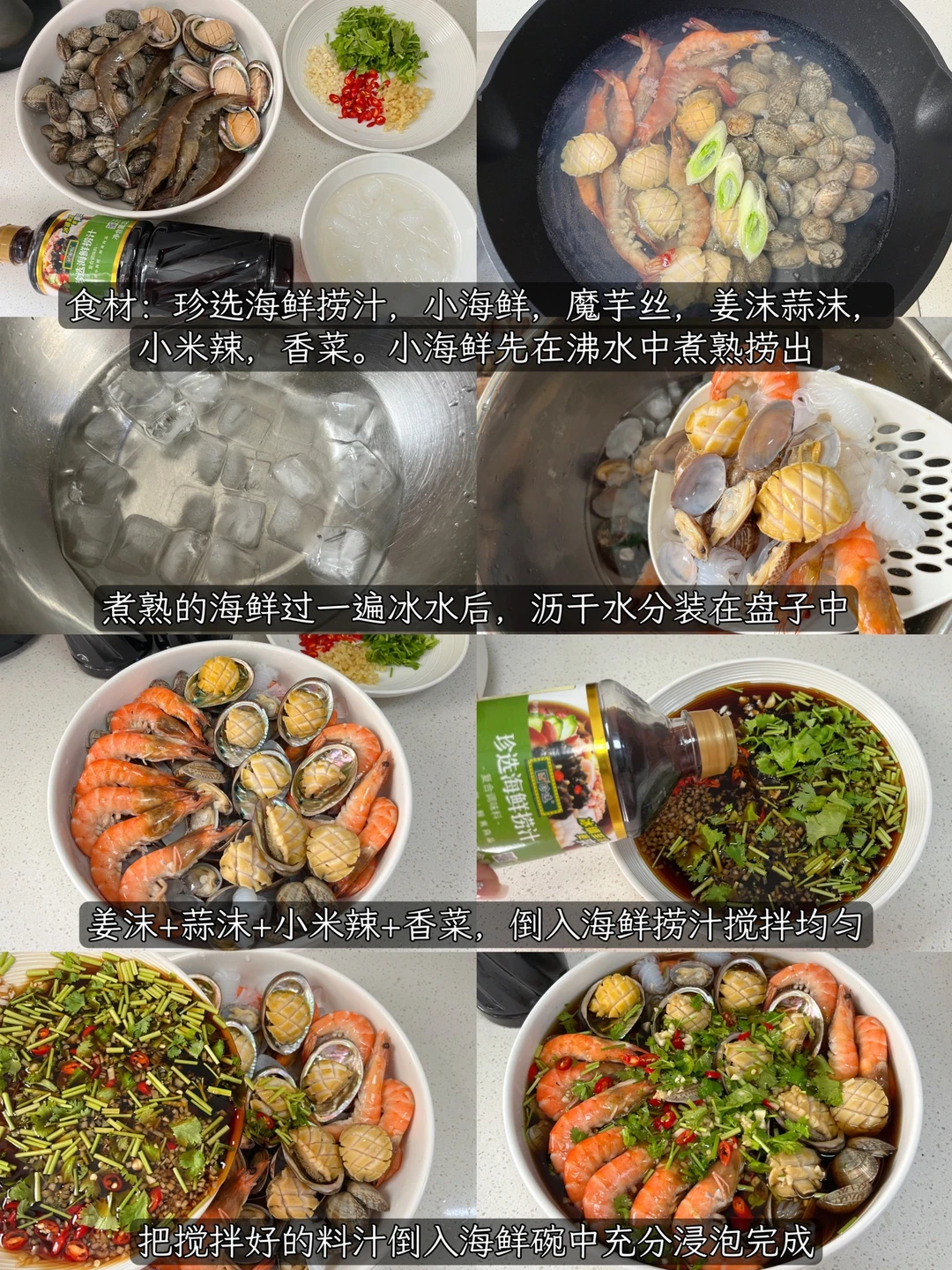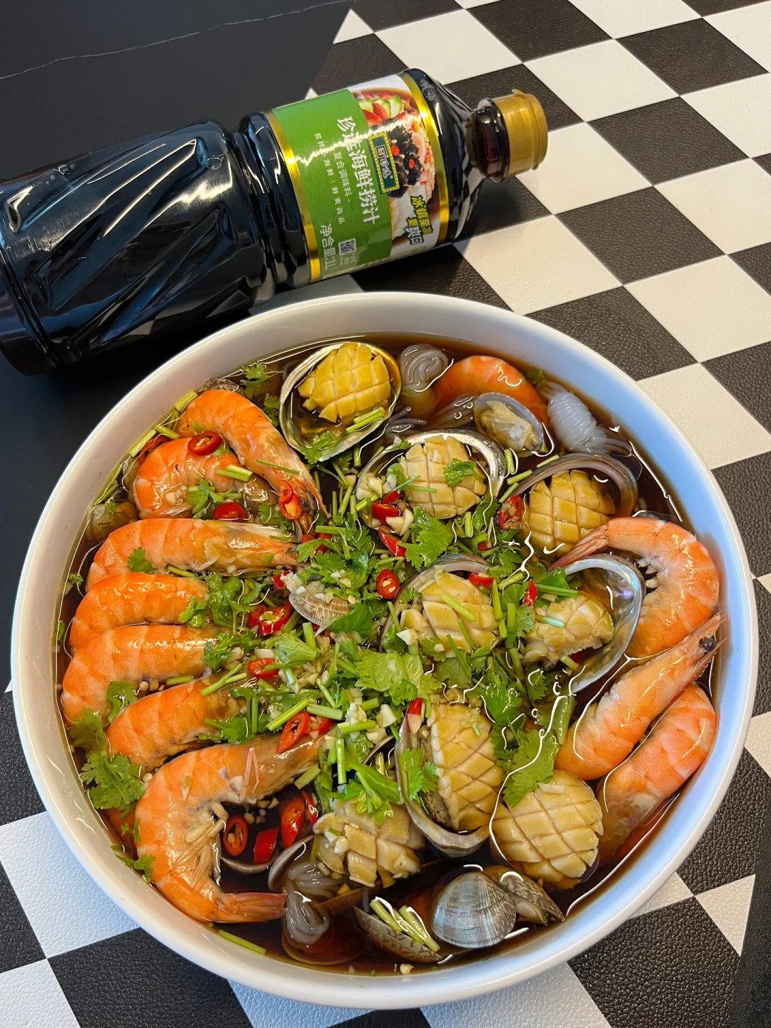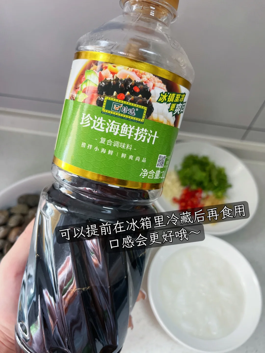 只需要一瓶现成的捞汁就可以轻松搞定,我家一直用的是珍选海鲜捞汁,平时买回来海鲜处理干净煮熟后,直接在捞汁里浸泡一会就可以吃啦~真的是省时省力~我都是几瓶的屯,在家就能实现捞汁自由~