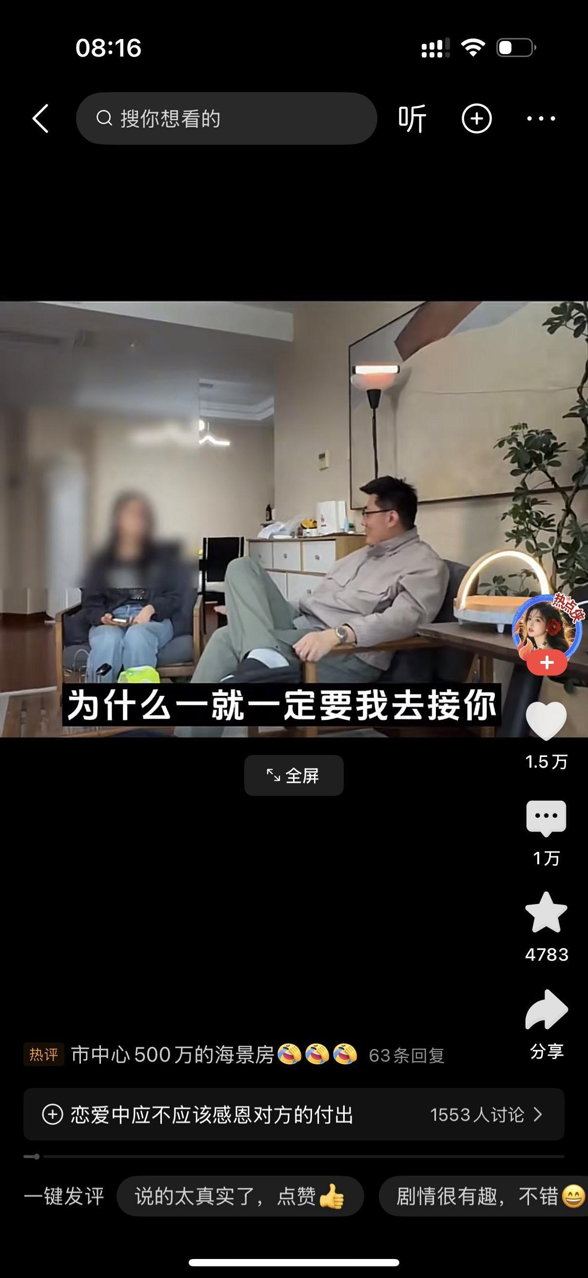 女友对男友没有去接机的事情耿耿于怀,她责备男友,想让你去接个机,为什么不去?男友说,为什么就一定要我去接你。你为什么就不能自己打个车呢?我可以给你付车费。女友说,因为我是你女朋友,你必须对我有求必应。男生说,我就没有自己选择的一点点余地吗?希望你不要对我要求太多。我已经给了你足够富足的生活。没有我你还住城中村,坐公交地铁。现在住着市中心500万的海景房,出门就是奔驰。你还不满足吗?女人说,我是因为你有钱才和你在一起吗?是因为我喜欢你这个人。男生笑了笑,所有关系的本质都是价值。我给了你这么多,该知足了。女人不再说话,她知道自己离不开这一切。