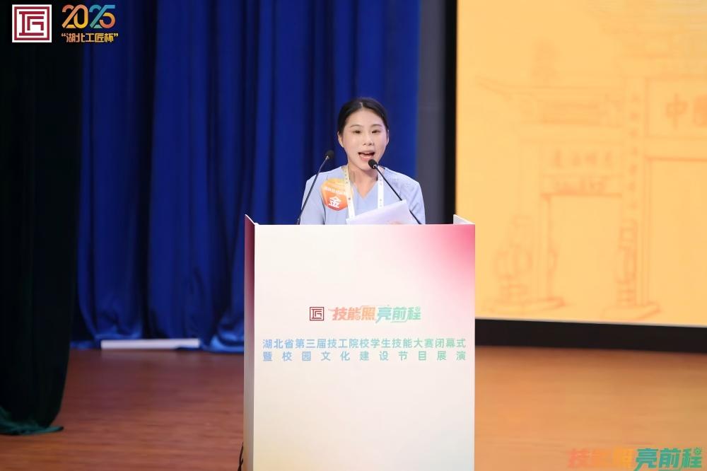 本次大赛竞争激烈,涵盖汽车技术、健康和社会照护等10个赛项。我市武汉三新职业技术学校学生彭诗琪在参赛人数最多的健康和社会照护赛项中脱颖而出,勇夺金牌,成为本届大赛中唯一获得金牌的民办技工学校。赛后,彭诗琪同学作为唯一一位金牌选手代表在闭幕式上发言,分享了技能成才的感悟,展现了鄂州学子精湛的专业技能与昂扬的精神风貌。